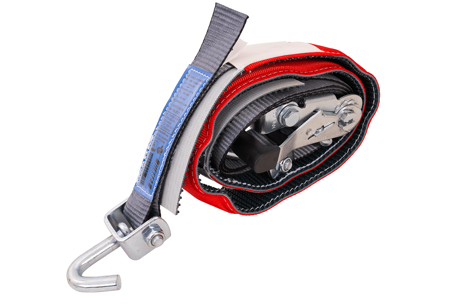 Surrestroppen har en enkel strekkfasthet på 1,5 tonn (1500 daN) , som betyr den maksimale lasten den kan holde når den er surret fra punkt til punkt – uten å vikle seg rundt lasten. Denne verdien er vanligvis halvparten av stropping og indikerer sikre bruksgrenser når den er enkelt strammet. For effektiv lastsikring anbefales det å bruke minst to stropper i et symmetrisk arrangement , noe som gir jevn fordeling av krefter og stabil immobilisering av kjøretøyet eller varene under transport.