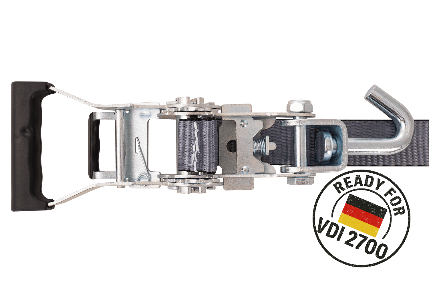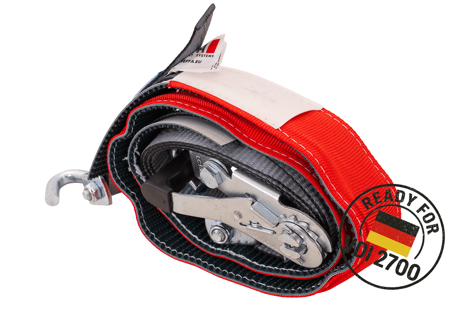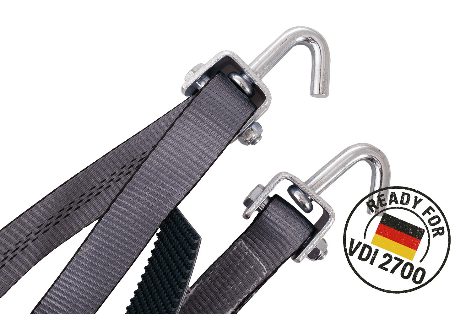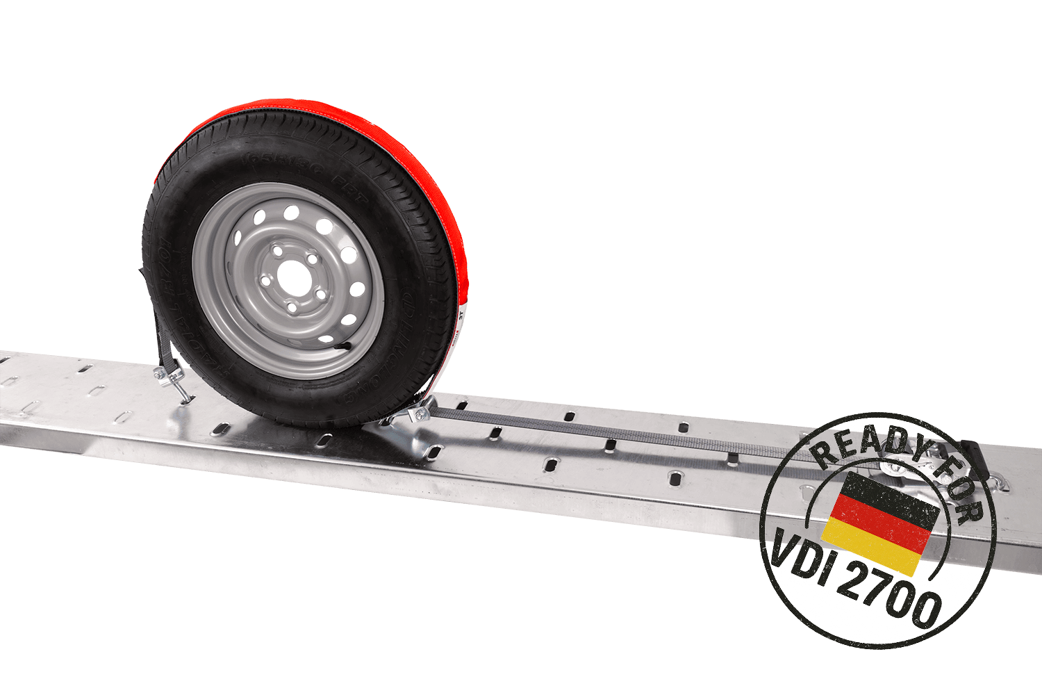 Direktivet VDI 2700 del 8.1 er en tysk teknisk standard som spesifiserer detaljerte krav for sikring av kjøretøy som transporteres på tilhengere med lasteplan og trailere . Når det gjelder surrestropper med hjulstropping, spesifiserer dette direktivet blant annet metoden for belteplassering, det nødvendige antallet surrepunkter (f.eks. 3-punktssystem), minimumsspenningsparametere og prinsippene for merking og tekniske godkjenninger. Samsvar med VDI 2700 8.1 betyr at stroppene oppfyller strenge krav til sikkerhet, pålitelighet og effektivitet ved immobilisering av det transporterte kjøretøyet , noe som er avgjørende for profesjonell transport av personbiler og varebiler. Takket være dette kan brukeren være sikker på at det brukte surresystemet oppfyller gjeldende europeiske og tyske standarder innen trafikksikkerhet.
