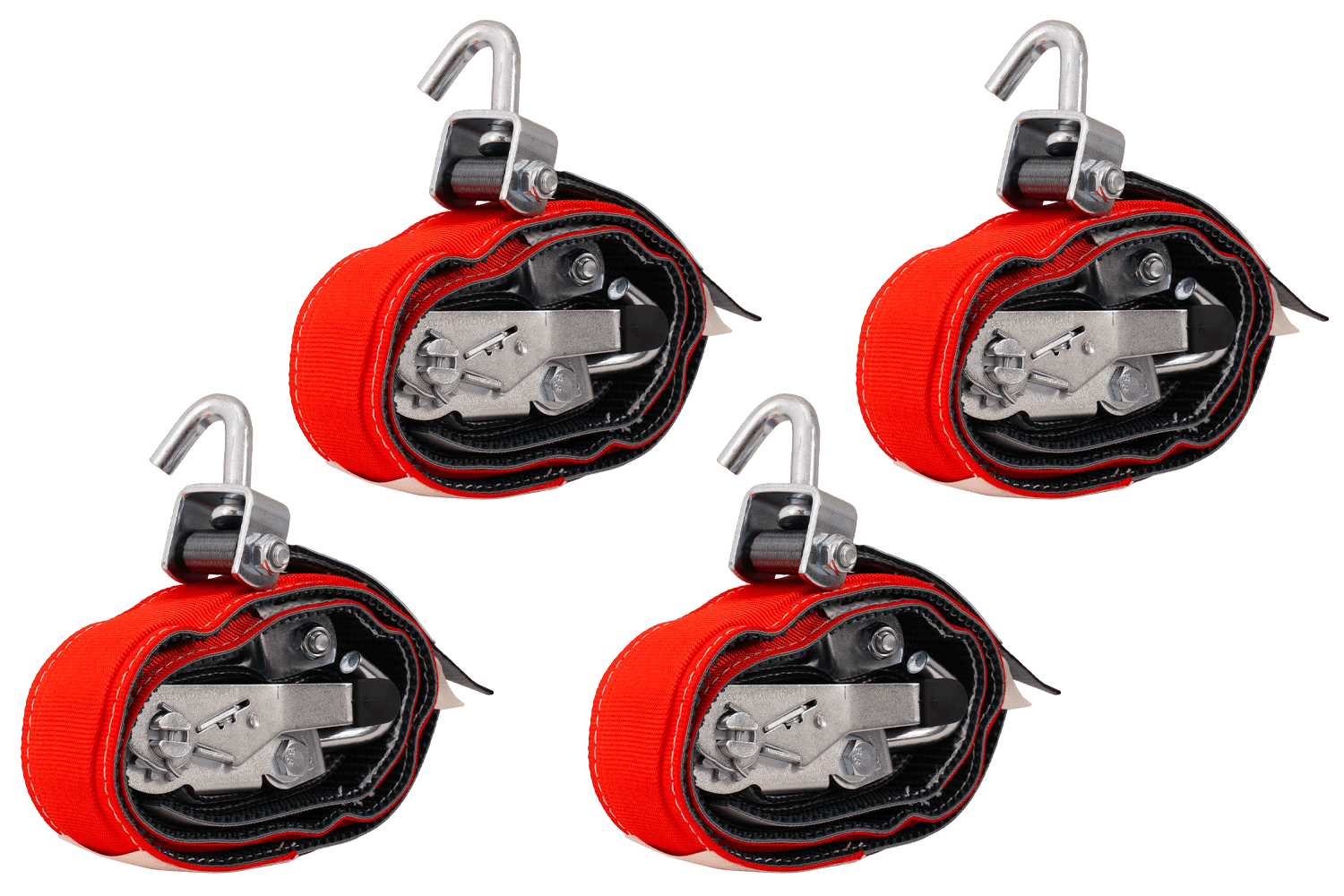 Sett med fire HEFFA CARLINE 130 tilhengertransportbelter, hjulsikringsbelter 2,8m/35mm/3t VDI 2700