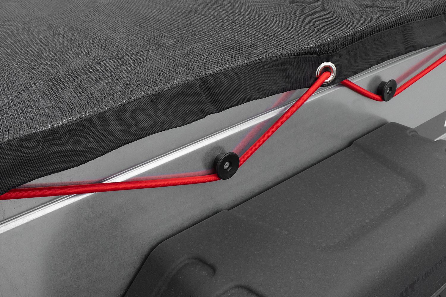 Produktet er utstyrt med en elastisk snor , sydd rundt hele omkretsen, noe som muliggjør rask og stabil montering på ulike typer tilhengere. Det slitesterke, svarte materialet er ikke bare estetisk, men også motstandsdyktig mot værforhold, slik at nettet kan brukes i ulike værforhold over lengre tid.