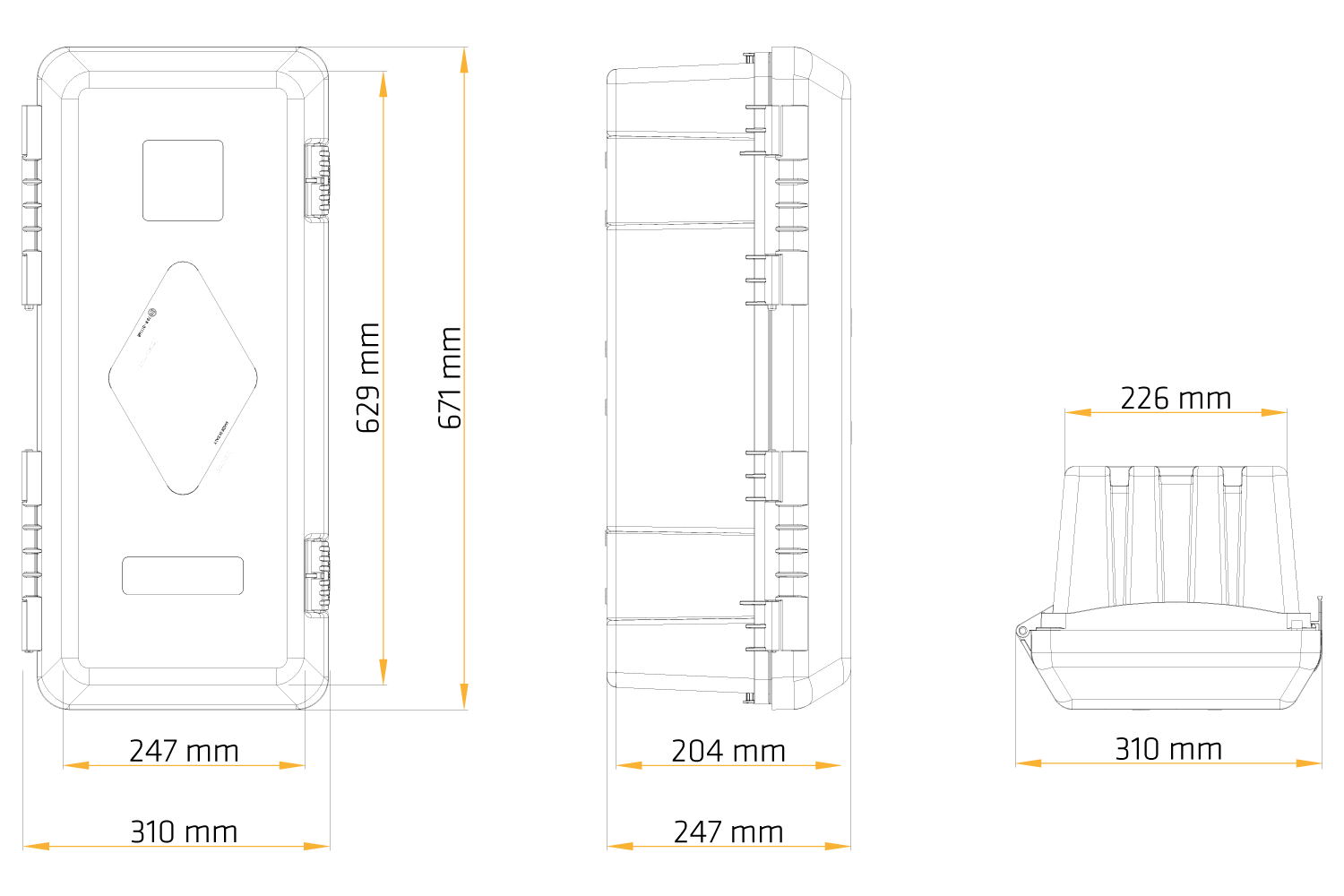 Brannslukningsapparatboksen er laget av polypropylen, nylon og polykarbonat av høy kvalitet, noe som sikrer eksepsjonell holdbarhet og motstand mot mekanisk skade . Disse materialene gir utmerket beskyttelse mot brann, vann, støv, drivstoff, UV-stråler og ekstreme temperaturer , noe som gjør boksen ideell for vanskelige driftsforhold. Den solide konstruksjonen beskytter innholdet mot påvirkning fra skadelige ytre faktorer, og inspeksjonsvinduet gir en rask kontroll av brannslukningsapparatets tilstand, noe som sikrer komfort og sikkerhet ved bruk.