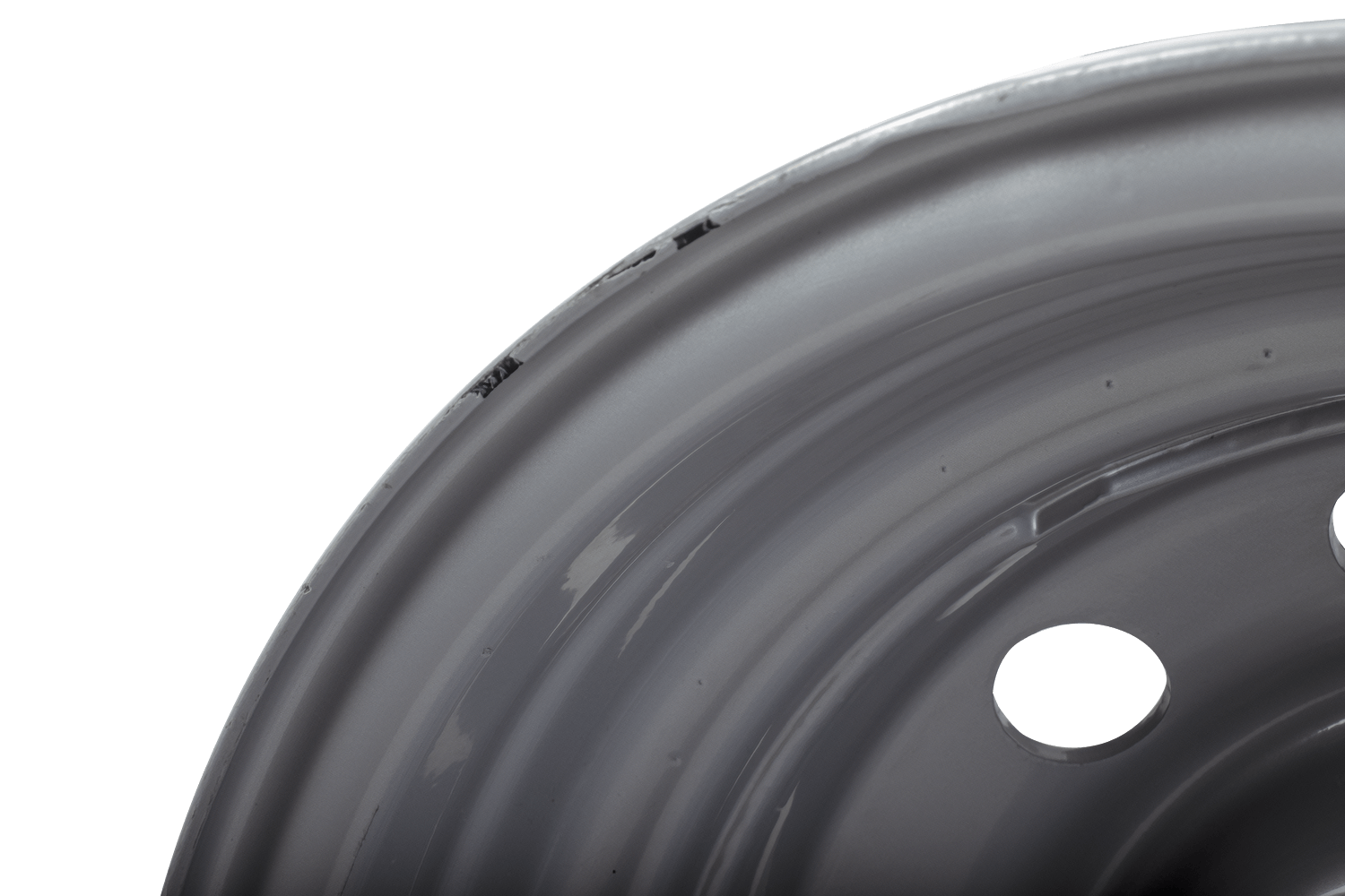 Outlet-produkt – felgen har skader av ulik grad og plassering, som lakkskader, misfarging, riper, mindre rustflekker eller bulker.