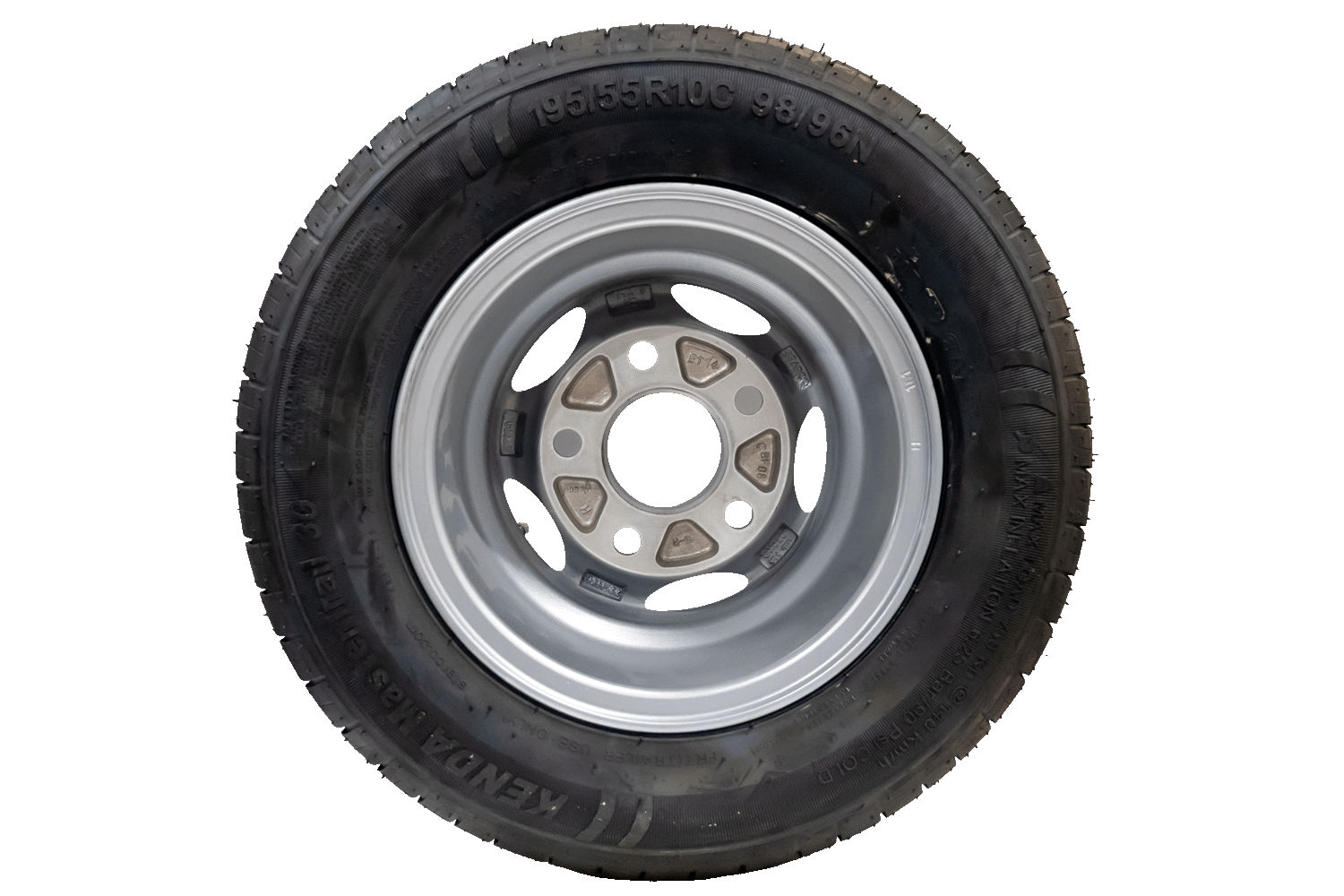 UTSALG Forsterket felg for tilhenger KENDA DEKK 195/55 R10C 98/96N ALUMINIUMSFELG STARCO 6Jx10"H2 5x112 ET:-4