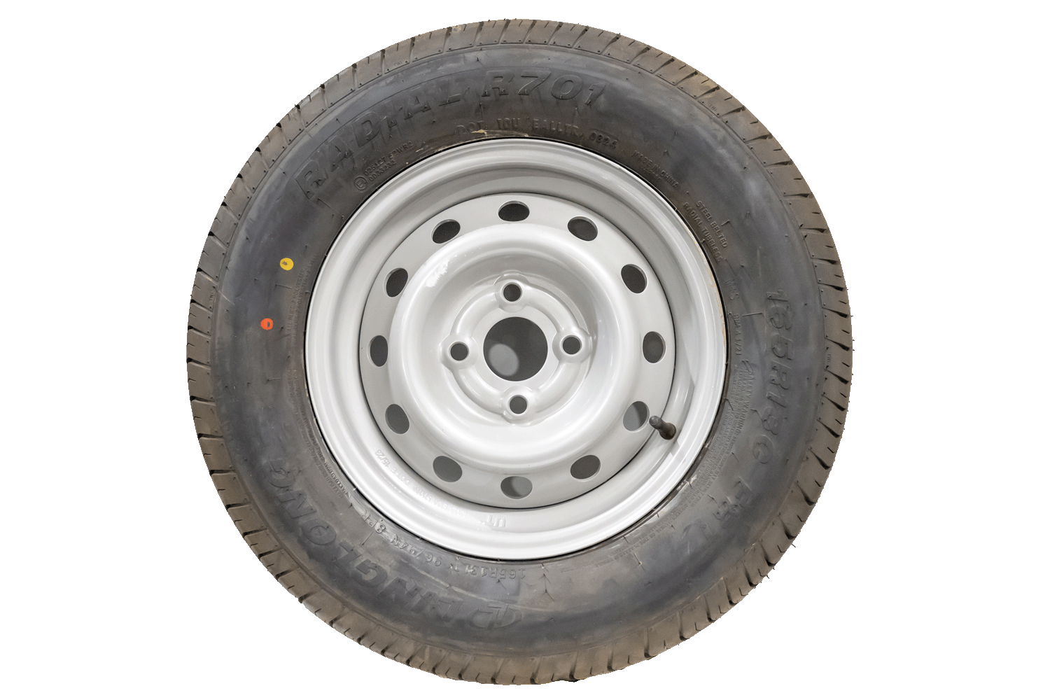 • OUTLET Hjul designet for lette tilhengere. LINGLONG 165/80 R13C dekk sikrer sikkerhet og stabilitet under kjøring. UNITRAILER 4Jx13"H2 4X100 ET:30 stålfelg. Maksimal hjullastkapasitet er 500 kg.