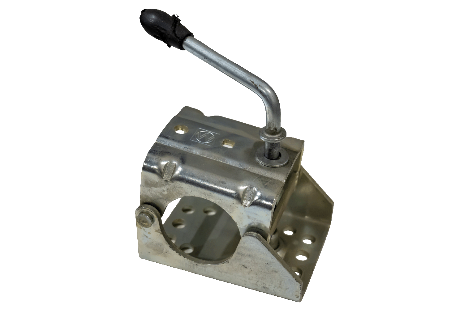 En klemme for støttehjul eller fast støtte fra det anerkjente tyske selskapet WINTERHOFF . KLE 60-klemmen passer til alle typer rør med 60 mm diameter . Enkel montering med fire skruer. Den har 10 monteringshull å velge mellom for perfekt passform på enhver tilhenger. Den kan brukes på trekkstangen eller andre strukturelle elementer for montering av støtter. Den er laget av svært slitesterkt, korrosjonsbestandig metall.