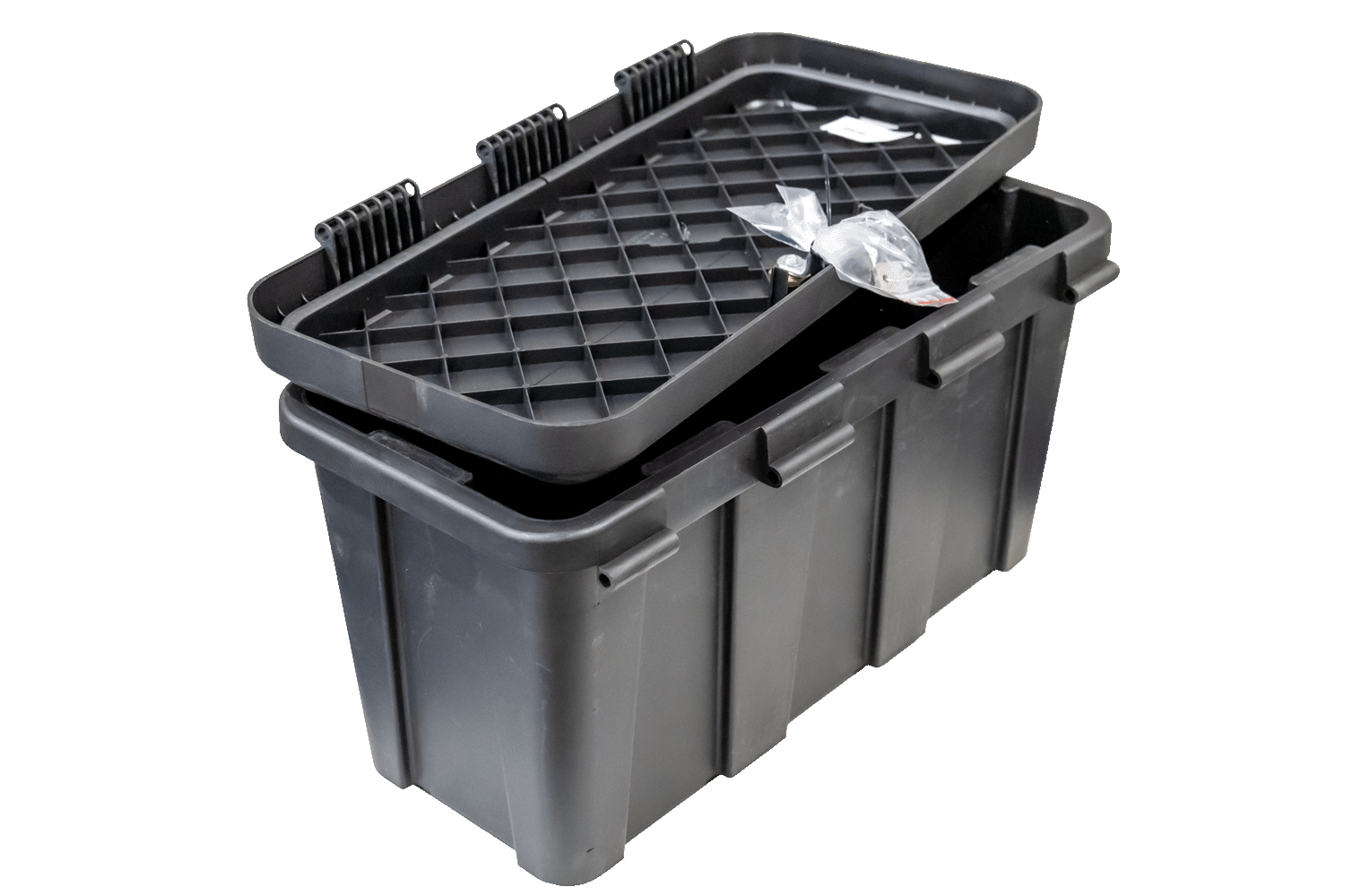 Kassen er laget av høykvalitets polypropylen, nylon og polyetylen, som kombinert med ekstra ribber forsterker strukturen, noe som øker holdbarheten og motstanden mot mekanisk skade. Materialet gir eksepsjonell beskyttelse mot brann, vann, syrer, støv, drivstoff, UV-stråler og ekstreme temperaturer , noe som gjør den ideell for intensiv bruk under tøffe forhold. Kassens lokk er utstyrt med en gummipakning som sikrer fullstendig tetthet og forhindrer at vann og støv kommer inn i kassen . Denne designen beskytter effektivt oppbevart verktøy og utstyr mot skadelige ytre faktorer, noe som er spesielt viktig for intensiv bruk på byggeplasser eller i tøffe værforhold.