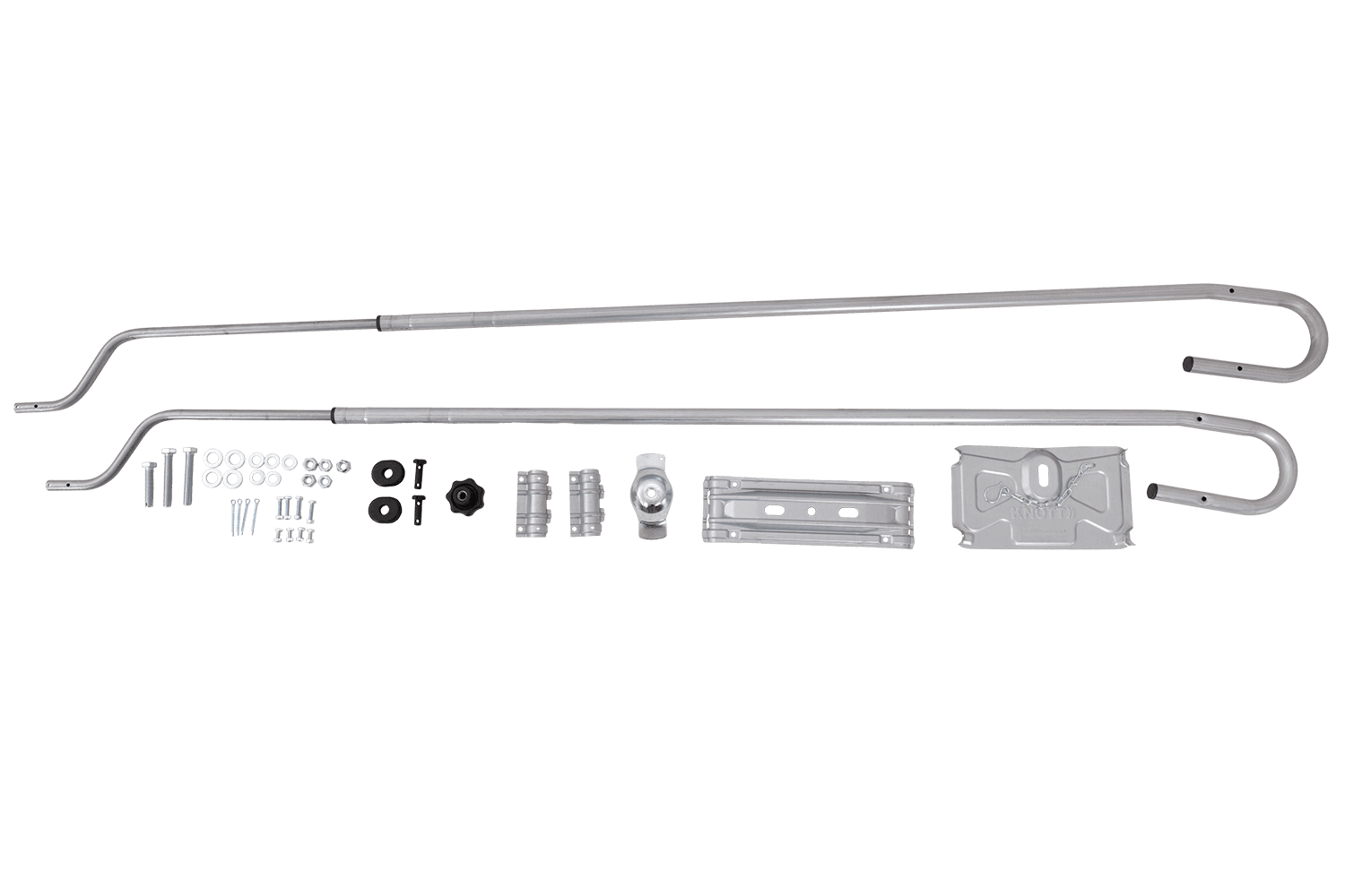 Brakettens design er universelt kompatibel , slik at den kan monteres på alle rammer fra 1475 mm til 1850 mm i bredden , uavhengig av tilhengerprodusent. Justeringsmekanismen er jevn og trinnløs , noe som gir perfekt justering til en spesifikk kjøretøymodell. Hele braketten er konstruert av korrosjonsbestandige stålrør med diametre på 16 mm og 25 mm, noe som sikrer maksimal holdbarhet, lastmotstand og lang levetid selv under tøffe værforhold.