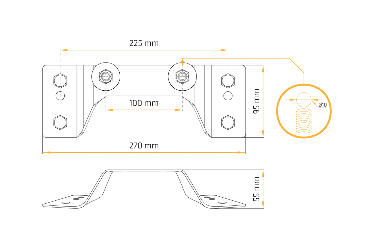 En praktisk reservehjulsfeste designet for montering på siden av bilhengere fra Unitrailer Garden Trailer KIPP- serien. Den muliggjør stabil og sikker feste av et 155/70 R13 4x100 -hjul, noe som gir rask tilgang til reservehjulet ved havari på veien. Festets mål er 270 × 95 mm , noe som forenkler installasjonen og sikrer kompatibilitet med sidekonstruksjonen.
