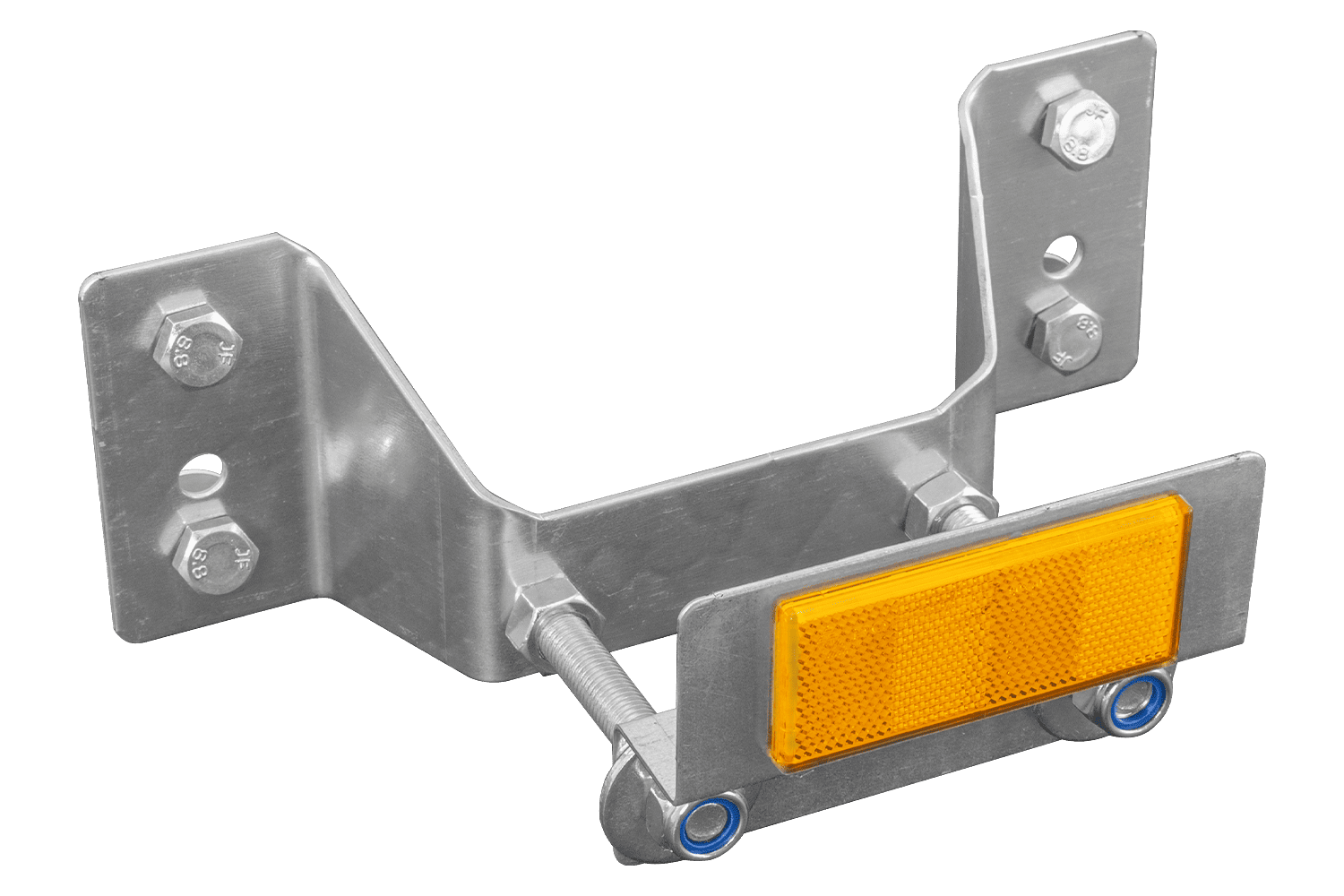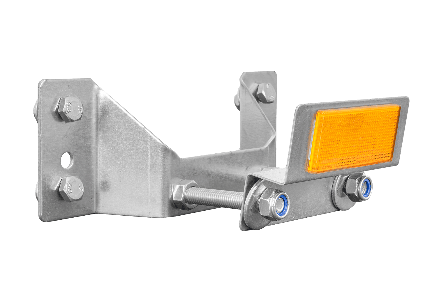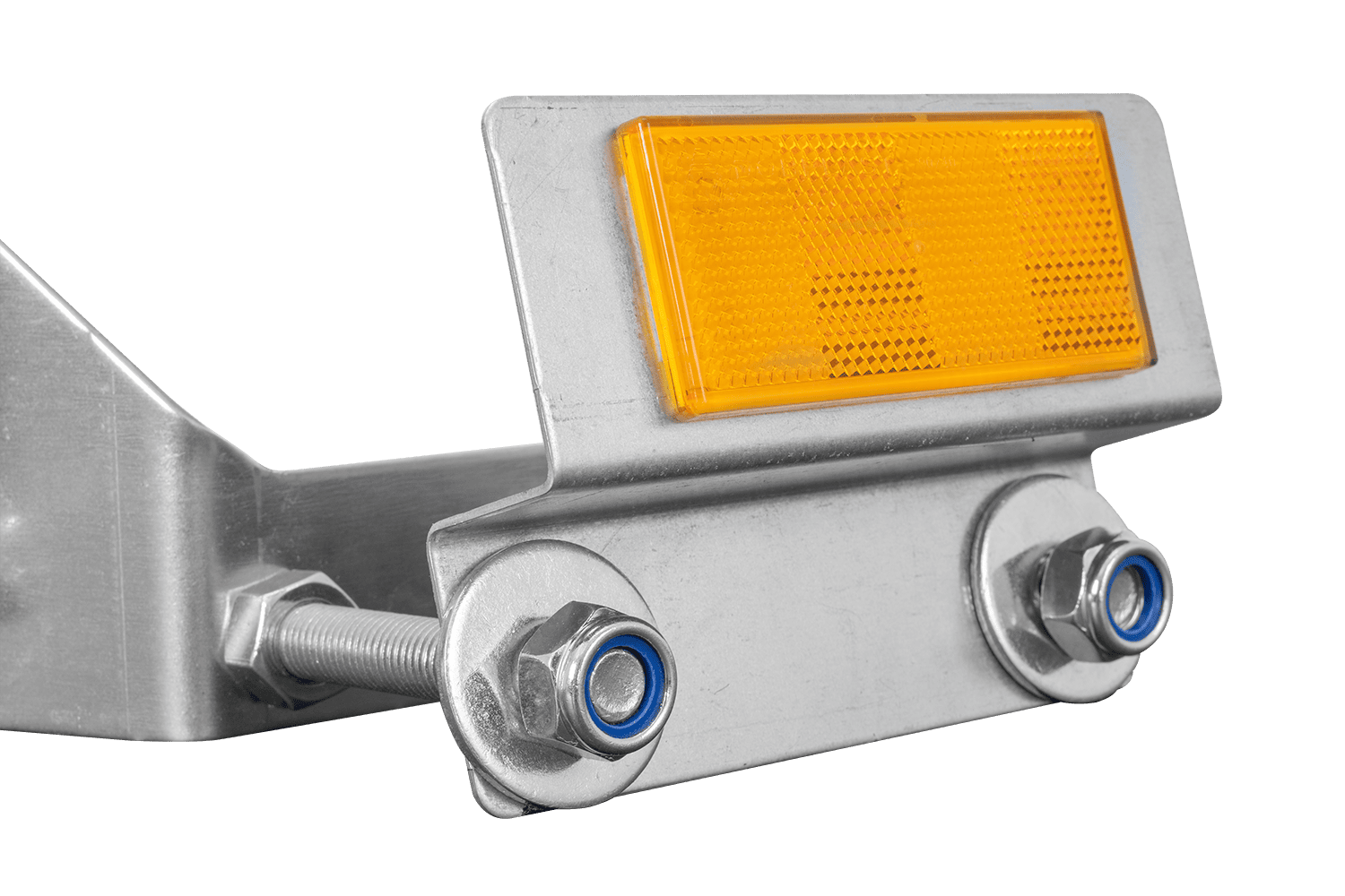 Takket være det enkle monteringssystemet sparer braketten plass i tilhengerens lasterom og gjør daglig bruk enklere. I tillegg er den utstyrt med en reflektor som forblir synlig selv etter at hjulet er montert, noe som øker trafikksikkerheten og oppfyller kravene til tilhengermerking.