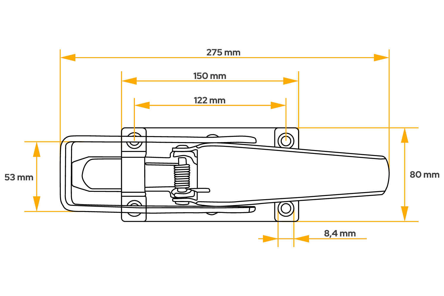 KNOTT 417177.001 sidefeste er en robust tilhengerkomponent som er utviklet for å sikre sidene på laste-, landbruks- og nyttehengere sikkert og permanent. Tilhengeren er 275 mm lang og har en grunnbredde på 80 mm , noe som sikrer holdbarhet selv under tung bruk .