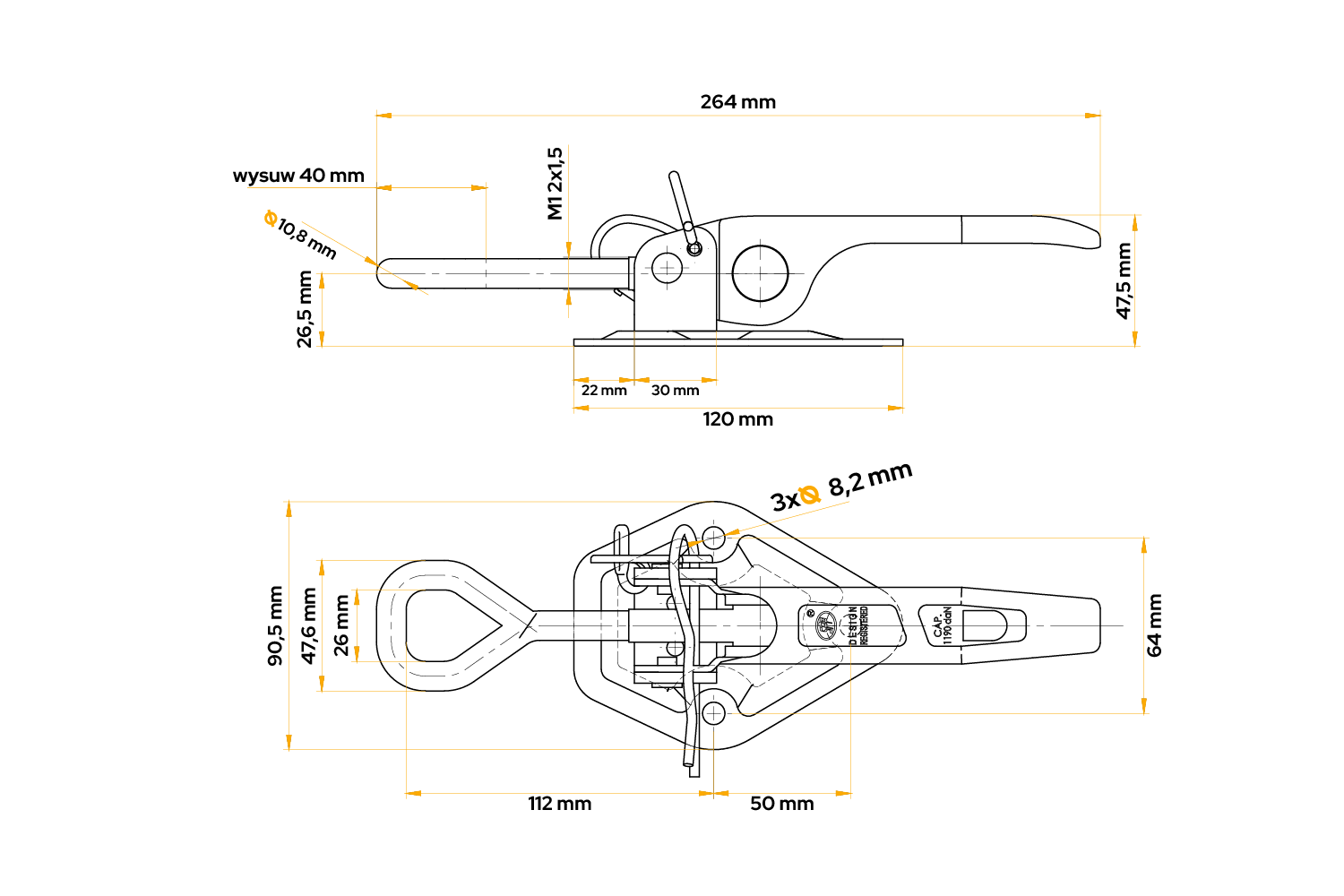 STEELPRESS ZB-15A eksentrisk sidefeste er et robust tilhengerbeslag som er utviklet for å sikre sidene på laste-, landbruks- og nyttehengere på en sikker og permanent måte. Tilhengeren er 264 mm lang og har en lastekapasitet på opptil 1190 kg , noe som sikrer holdbarhet selv under tung bruk .