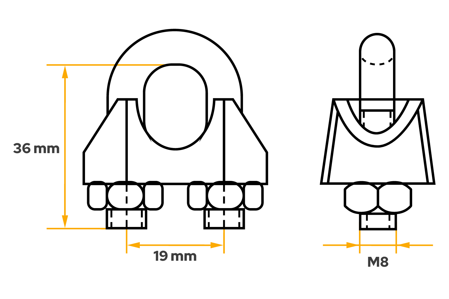 ZL10-kabelklemmen fra DROMET er et praktisk og slitesterkt monteringselement designet for klemming av stålkabler med en diameter på 10 mm . Utstyrt med M8-gjenger , kjennetegnes den av en høyde på 41 mm og en hullavstand på 19 mm i aksene, noe som sikrer en kompakt størrelse og enkel justering til ulike festesystemer. Klemmehuset er laget av slitesterkt støpejern, mens bøyen er laget av galvanisert stål, noe som garanterer høy korrosjonsbestandighet og lang levetid selv under vanskelige ytre forhold .