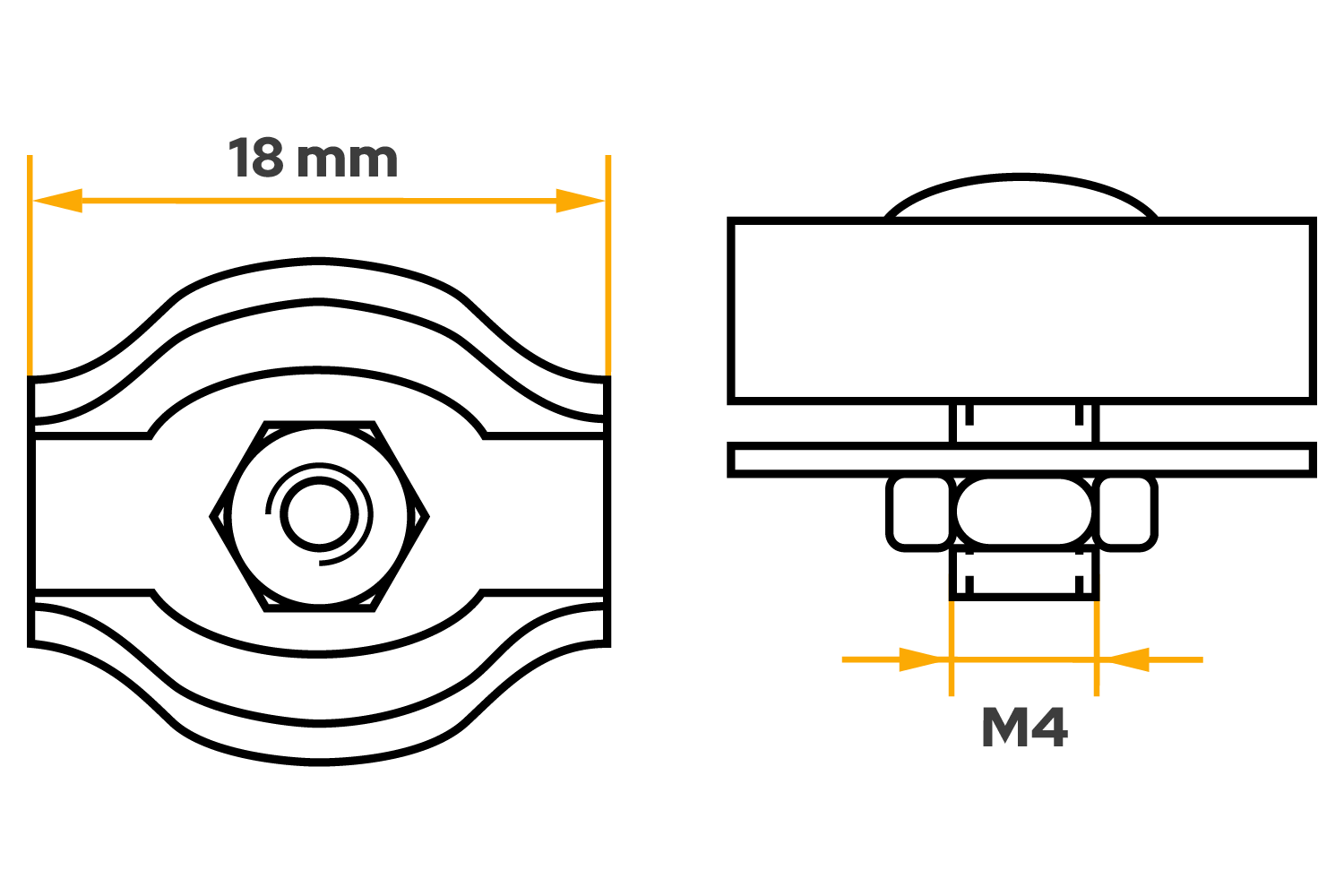 ZLS1.3- tauklemmen fra DROMET er en enkelt sadelklemme designet for å koble til, feste og klemme stålkabler med en diameter på 3 mm . Utstyrt med M4-gjenger, en total lengde på 18 mm og et kompakt design, muliggjør den rask og effektiv festing på punkter der dobbeltfeste ikke er nødvendig. Sadelformen sikrer god taufeste og enkel installasjon i systemer som krever plassbesparelse.
