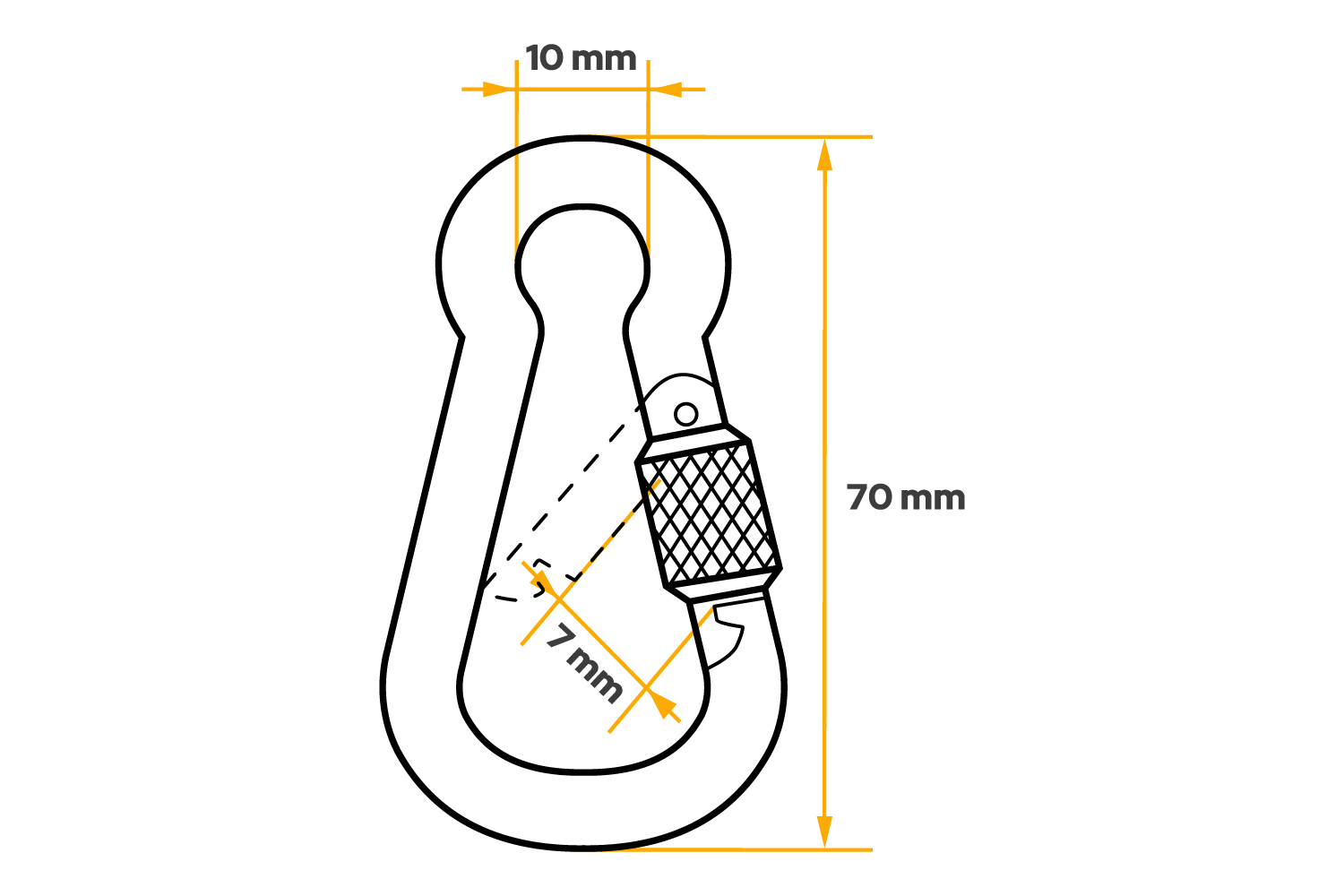 Karabinkrok med sikring for tau DROMET KSZ.7.70 brannmannskarabinkrok 7x70mm