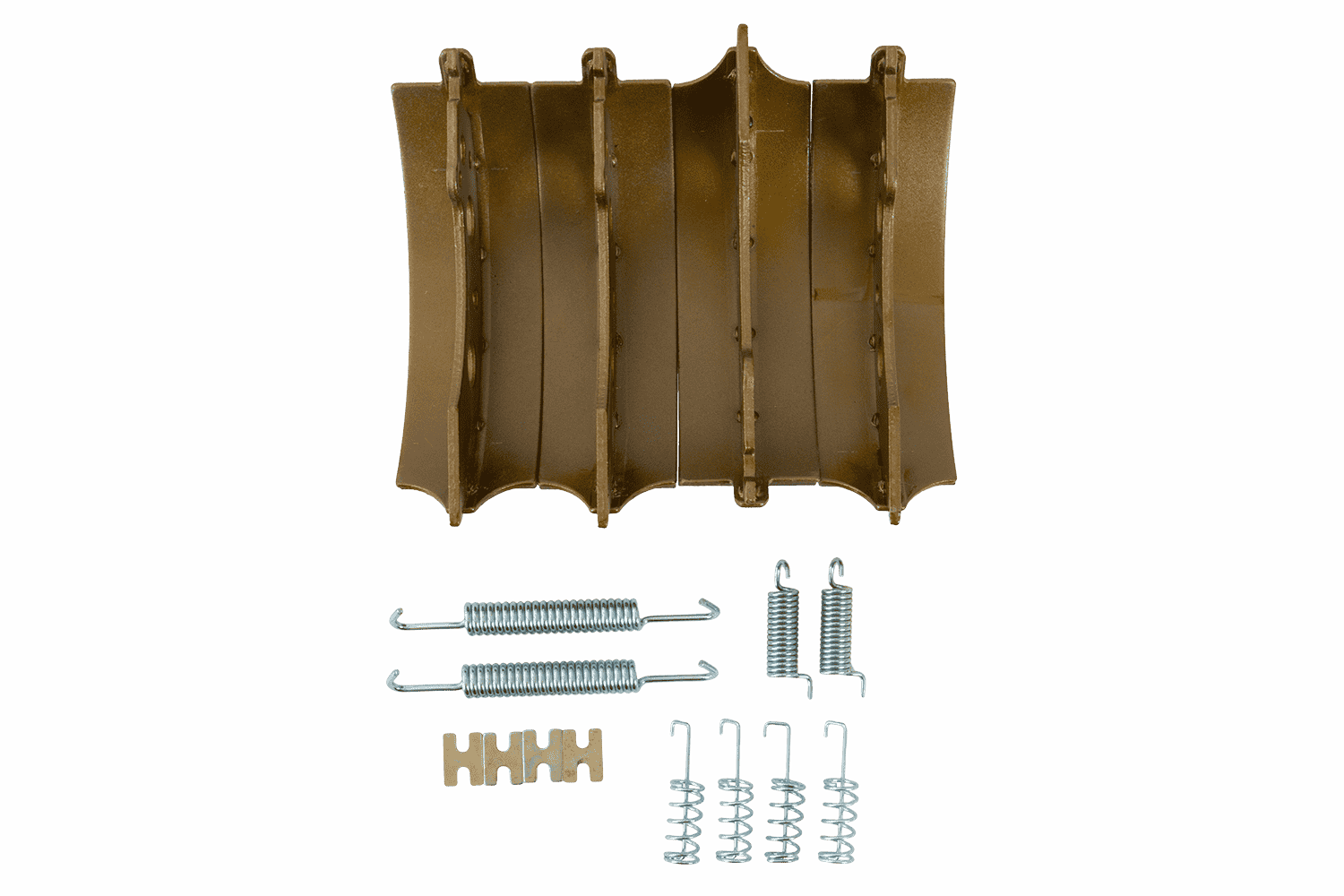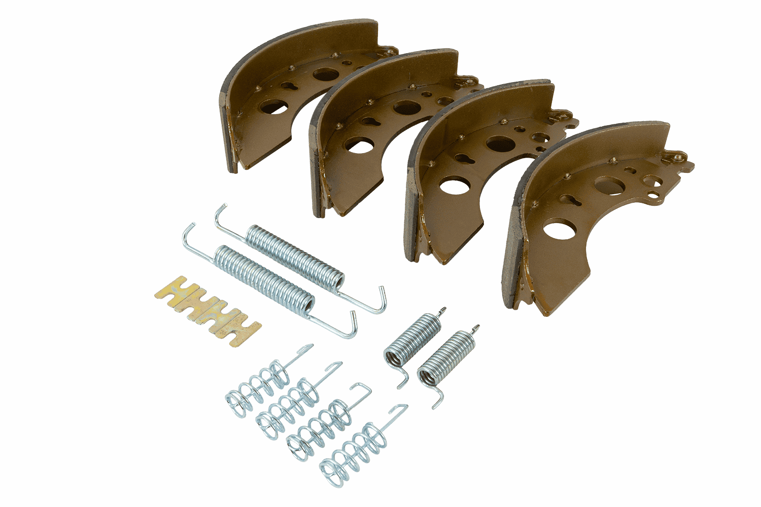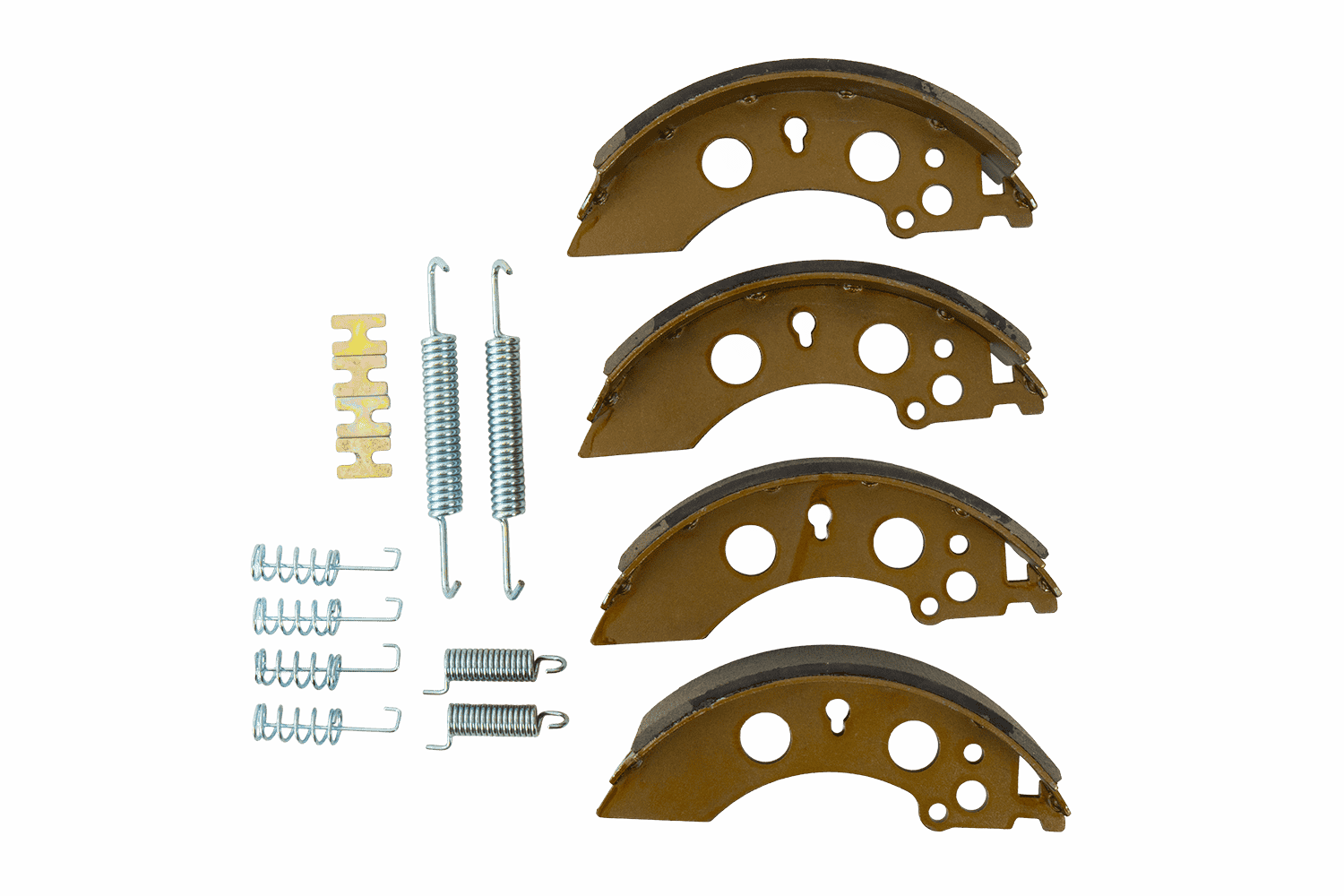 200x50 bremsesko – AL-KO erstatning 1213889 – er et komplett sett for ombygging av AL-KO 2050 trommelbremser med en indre trommeldiameter på 200 mm og en skobredde på 50 mm , designet for tilhengere med aksellaster på 1050, 1350 og 1500 kg . Settet gjenoppretter systemets effektivitet når bremsingen blir ujevn, bremselengden øker eller beleggene blir slitt eller overopphetet. Settet inkluderer bremsesko og alle nødvendige monteringsfjærer (holder- og returfjærer) sammen med plater, noe som forenkler fullstendig utskifting.