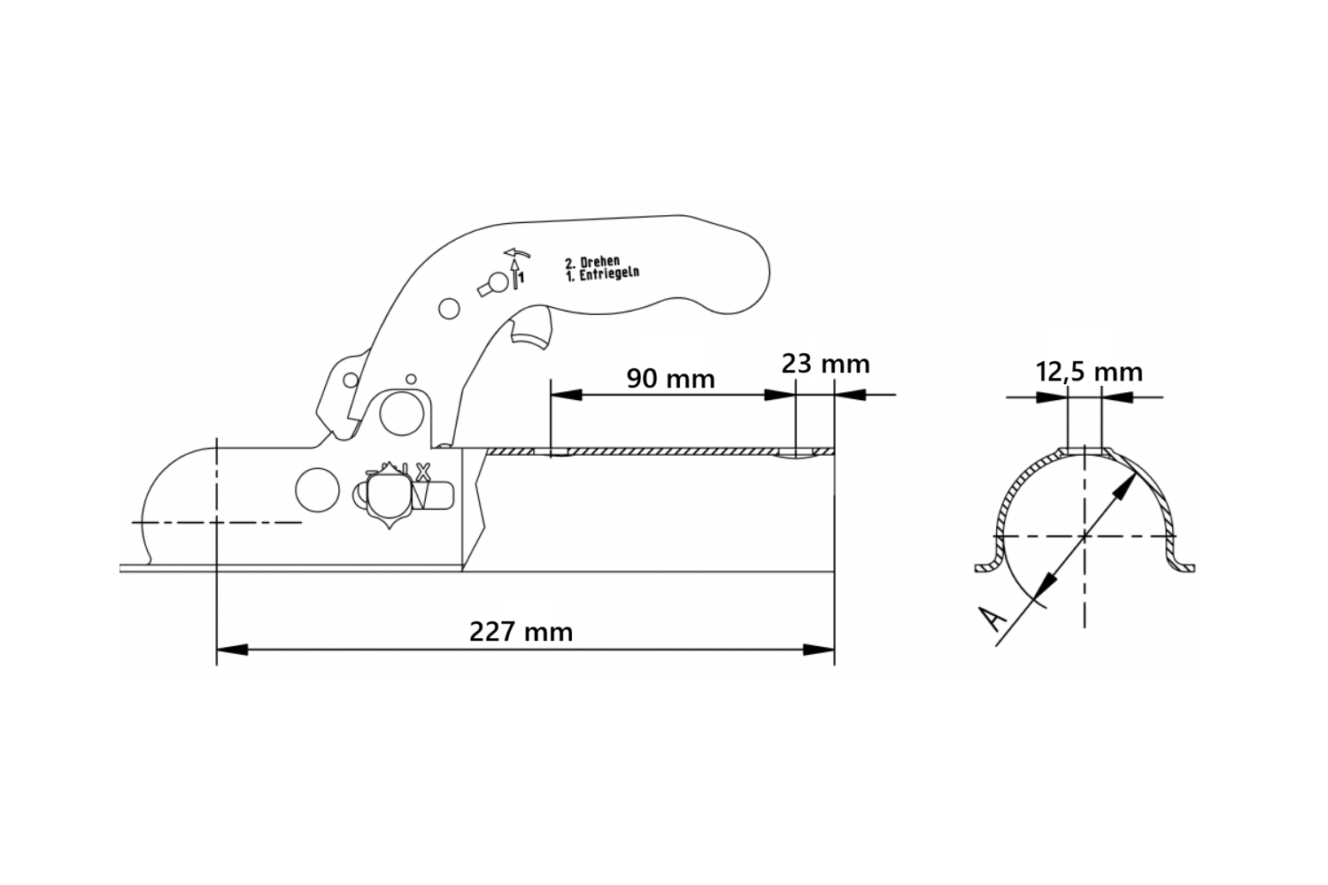 KNOTT K7.5-D kulekobling for en 750 kg tilhenger med 60 mm rørformet dragstang