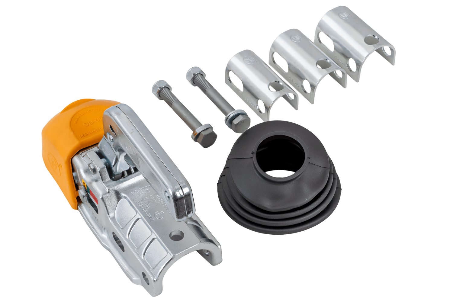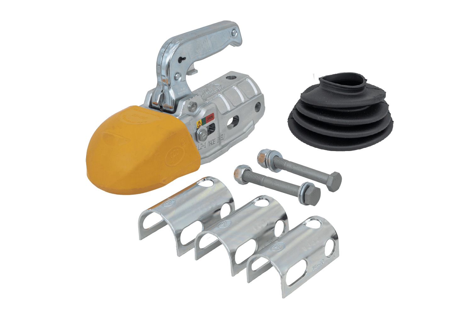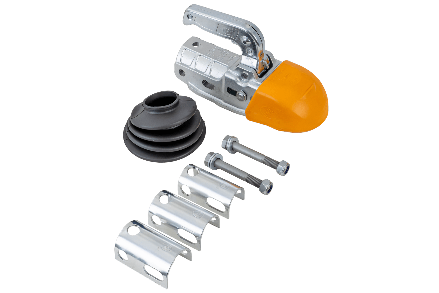Settet består av: koblingshode, reduksjonsadaptere, monteringsskruer, sikkerhetsdokk og gummideksel for påløpsanordning. Safety Dock beskytter bakenden av kjøretøyet mot riper og brukerens ben mot støt under manøvrering , mens en gummimansjett dekker skyverøret og beskytter påløpsmekanismen mot smuss og fuktighet. Adaptere gjør tilhengerfestet kompatibelt med påløpsanordninger med en skyverørdiameter på 35 mm til 50 mm .