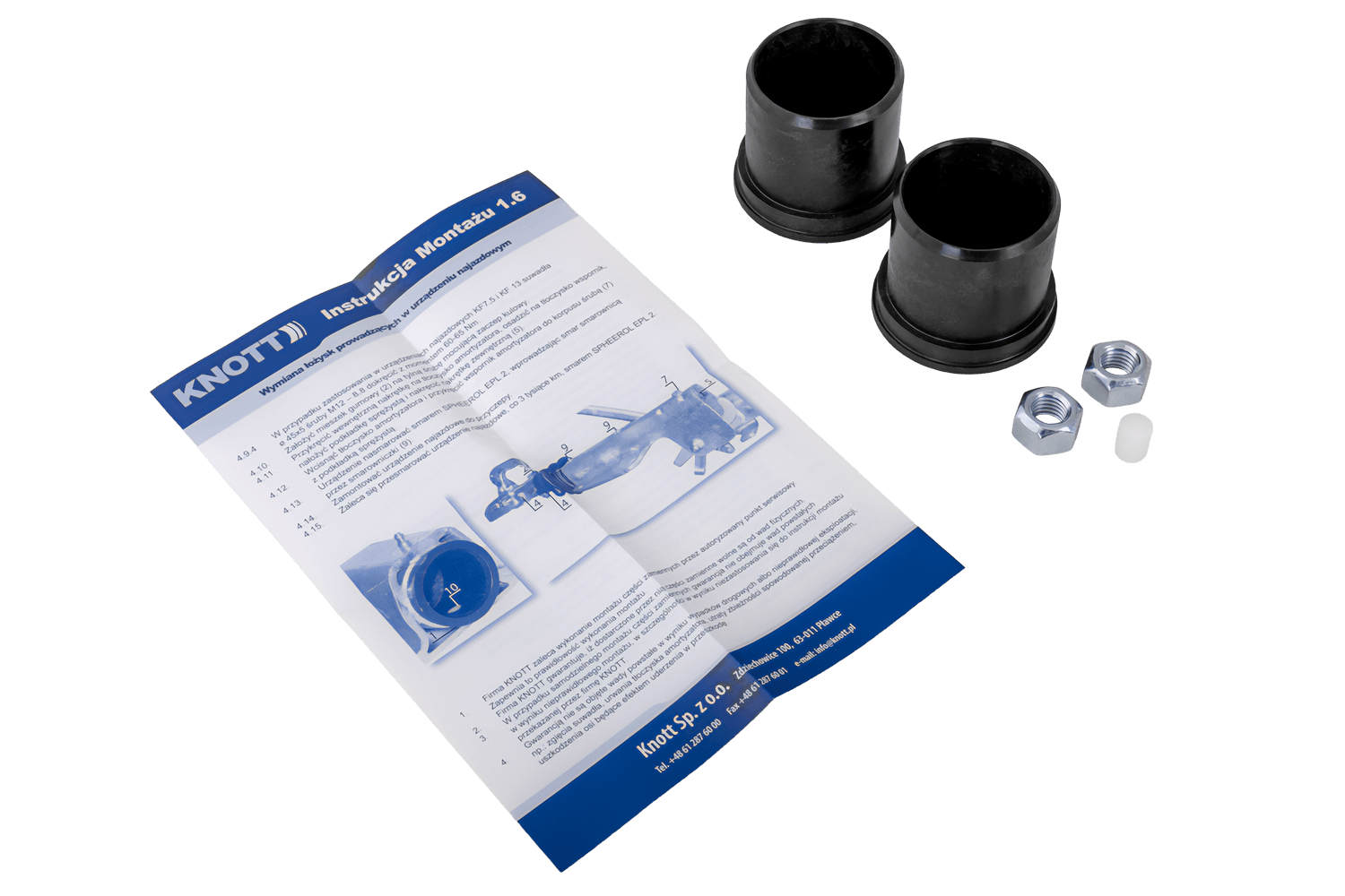 KNOTT KK0990S glidebøssingsett inneholder alt monteringsutstyret som er nødvendig for riktig utskifting av føringslager i påløpsmekanismer. Settet inneholder: 1 x 10x14 mm PA66 føringspinne (69004594) , som sikrer en stabil bøssingfeste; 2 x 44,6 mm føringslager (69000194), som sikrer presis sleideføring; og 2 x M12 selvlåsende muttere (D980.004) , som sikrer en slitesterk og sikker forbindelse. Alle komponenter er kompatible med påløpsmekanismene nevnt ovenfor, noe som sikrer høy holdbarhet, monteringsnøyaktighet og pålitelig drift av mekanismen.