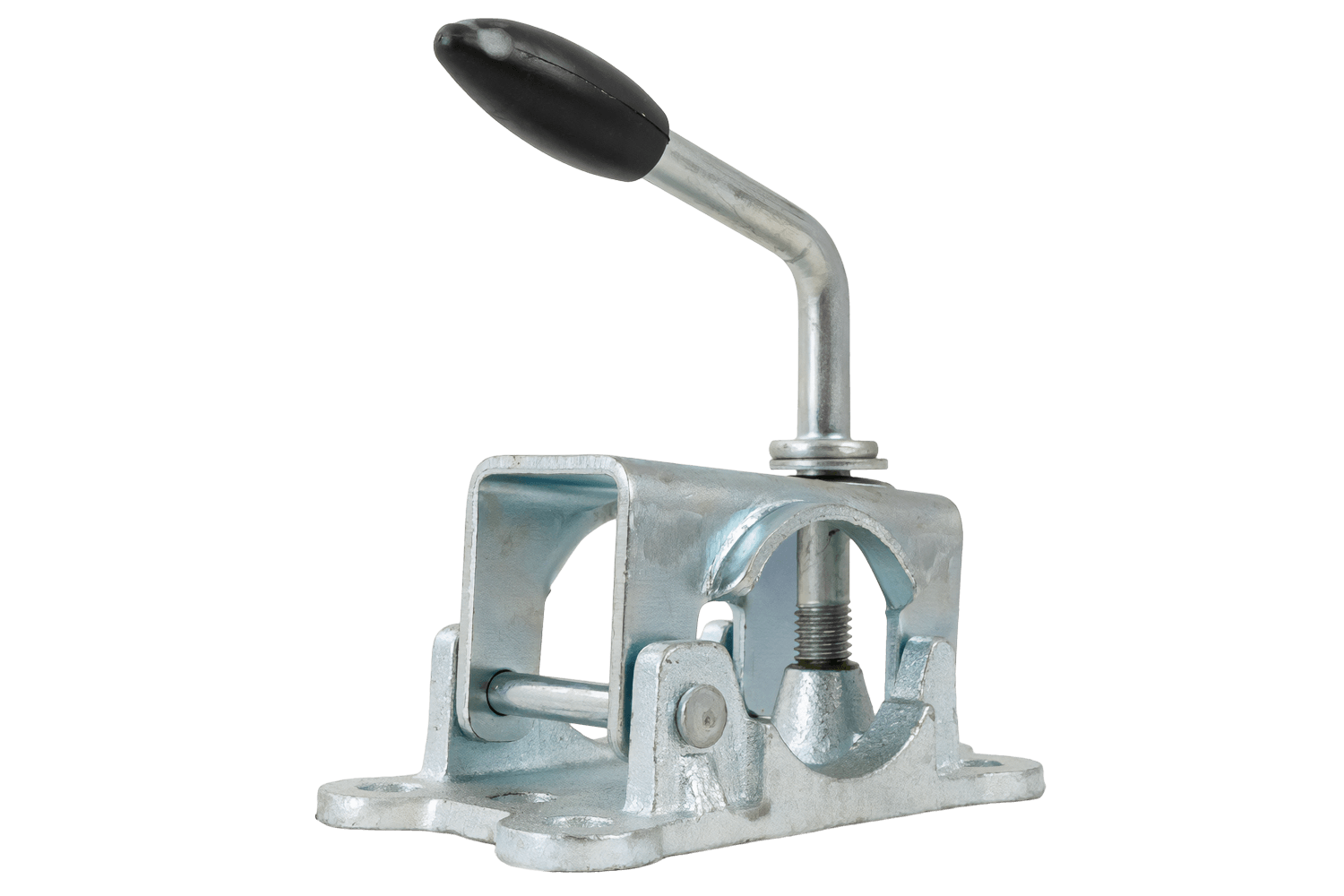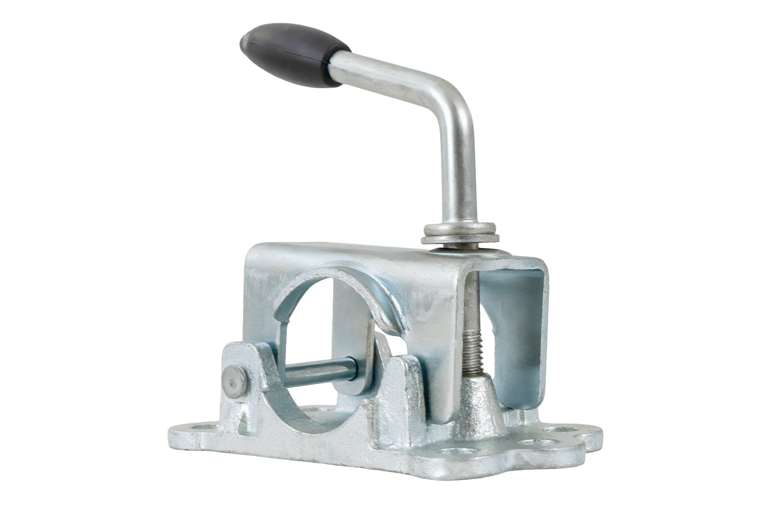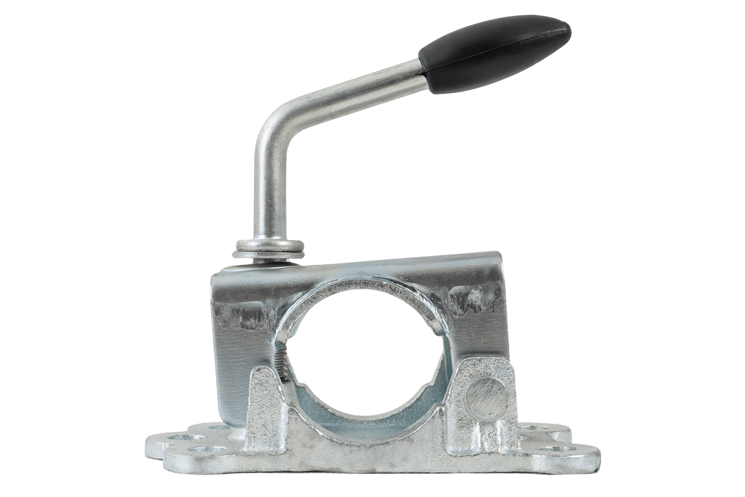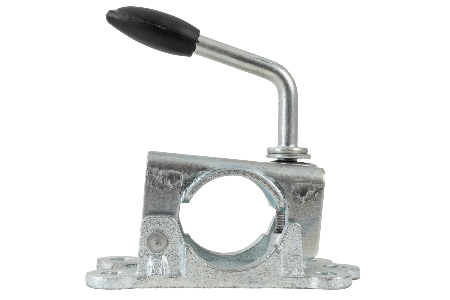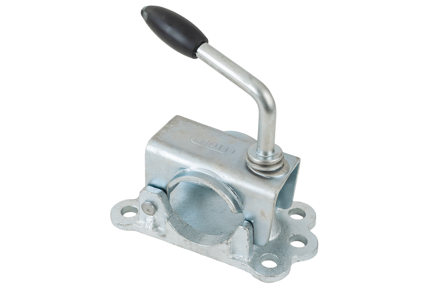 KNOTT 4802869X støttehjulklemme/tvinge brukes til å montere støttehjul med et rør med en diameter på 48 mm . Sokkelen har monteringshull med en avstand på 150 x 50 mm og en diameter på 11 mm. lar deg raskt feste braketten til rammen eller trekkstangbraketten. Trykkspaken sikrer et sikkert grep om røret, reduserer glidning og vibrasjoner, og muliggjør rask justering av hjulhøyden eller fullstendig fjerning for transport eller service.