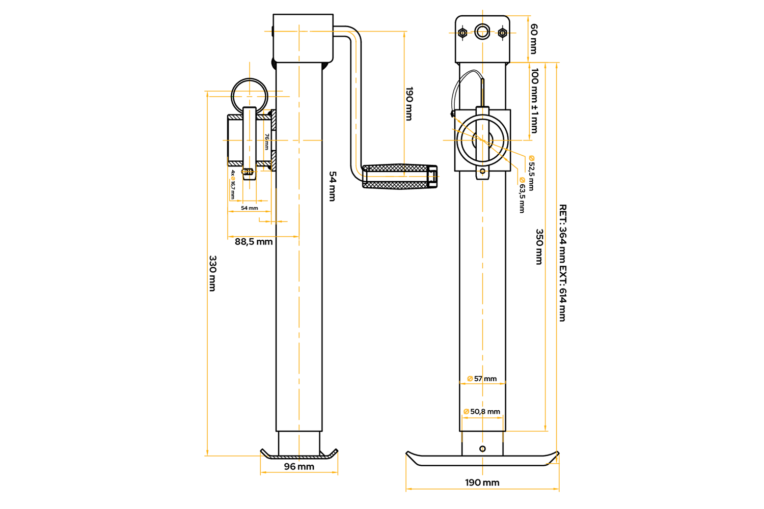 UNITRAILER TJ5001 sveivstøtte for 1300 kg tilhenger