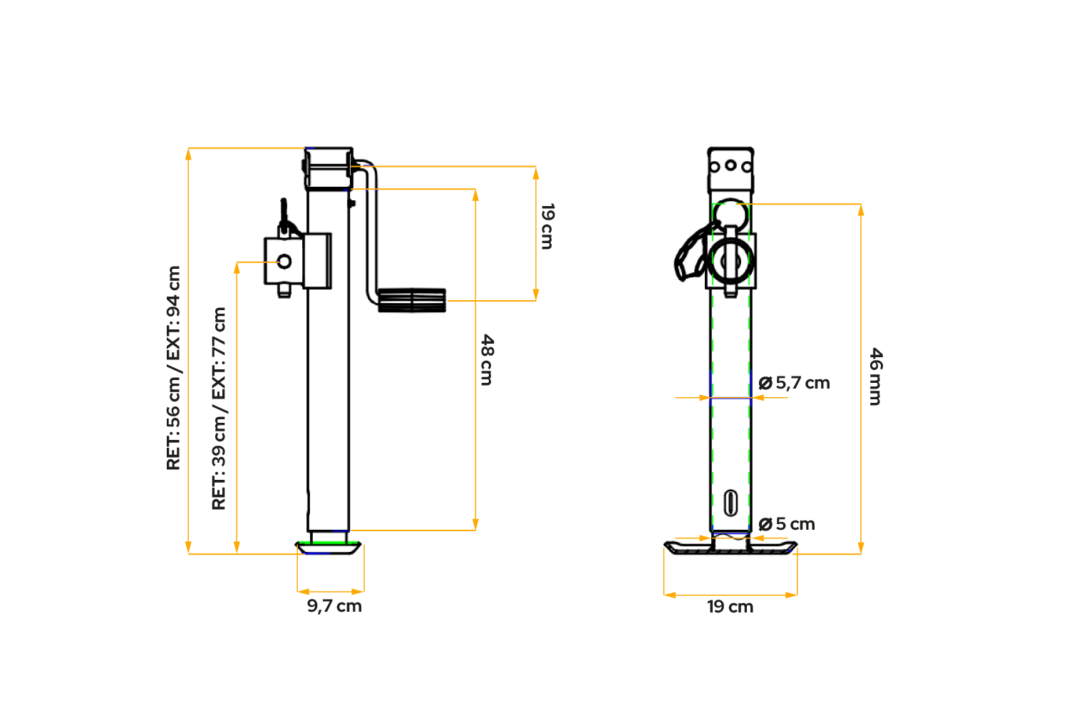 Sveivmekanismen gir usedvanlig jevn drift, noe som muliggjør presis heving og senking samt rask justering av støttehøyden. Takket være den slitesterke konstruksjonen er løfteren egnet for både daglig bruk og krevende arbeidsmiljøer, og sikrer pålitelig drift under alle forhold. Solid stålkonstruksjon garanterer høy motstand mot belastninger og intensiv bruk, mens pulverlakkering øker motstanden mot korrosjon og mekanisk skade, noe som sikrer lang levetid under veiforhold .