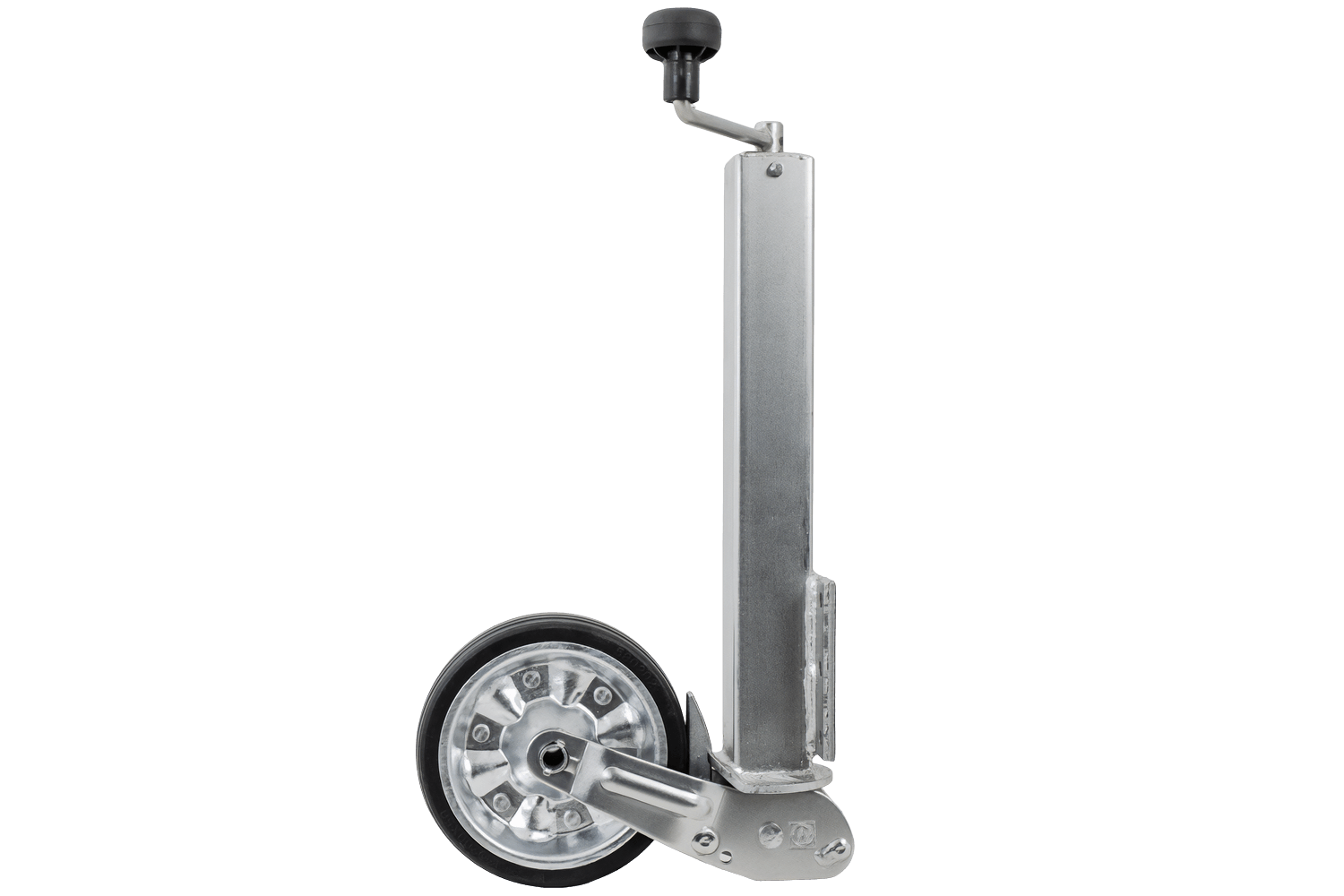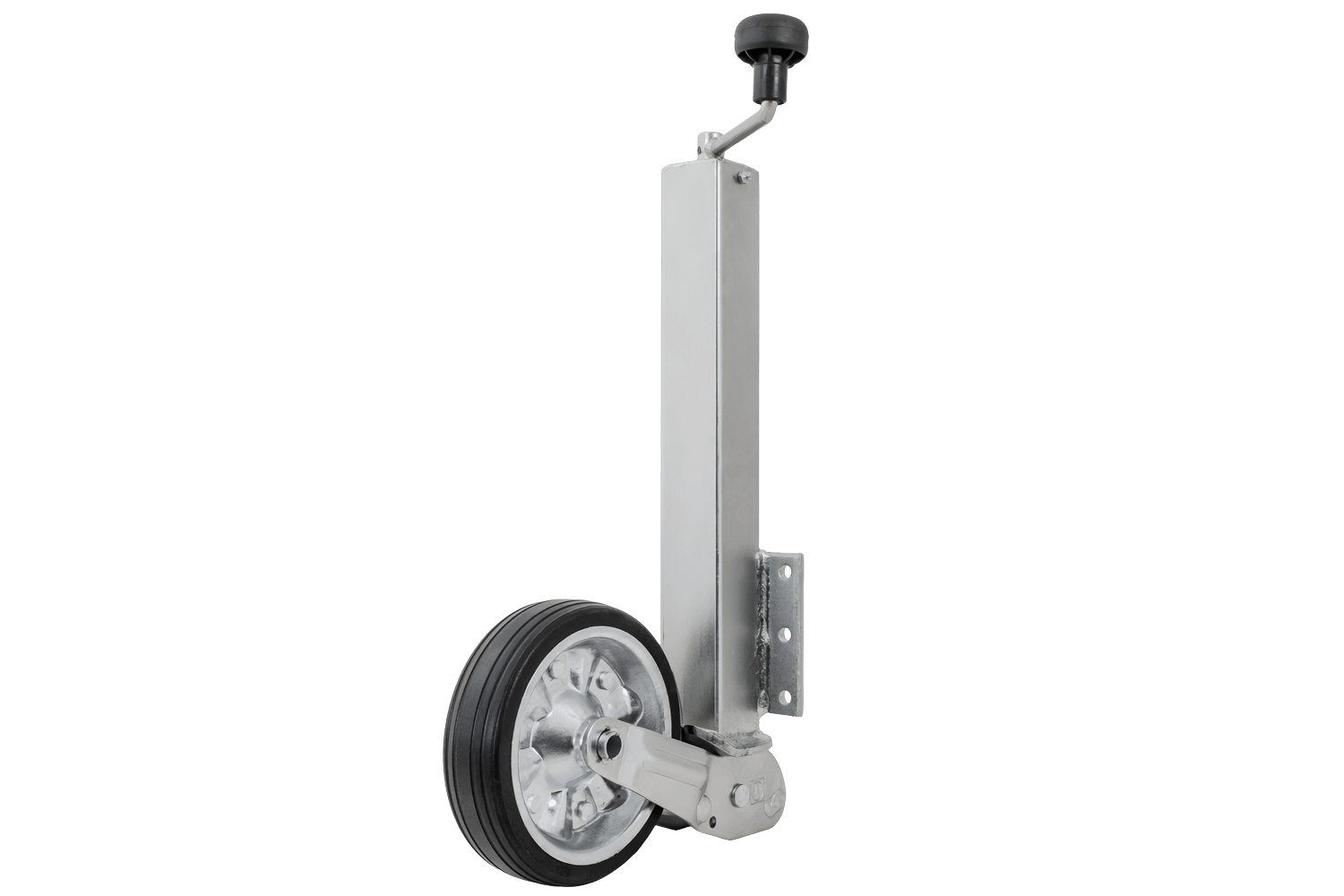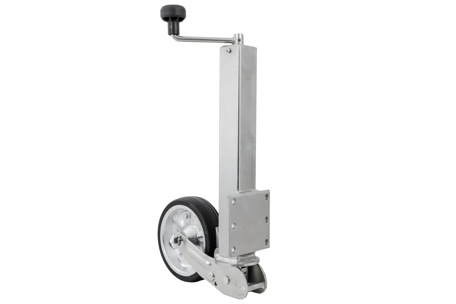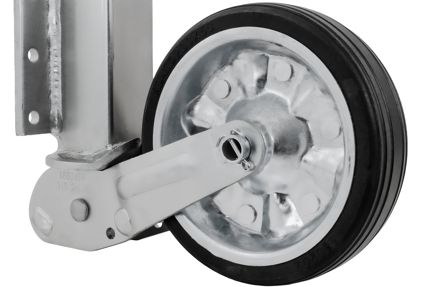 Hjulet er elektrogalvanisert , noe som effektivt beskytter det mot korrosjon og tøffe værforhold. Løftemekanismen er helautomatisk, noe som forenkler den daglige bruken betydelig. Takket være den robuste solide gummikonstruksjonen, stålfelgen og de glatte lagrene, sikrer støttehjulet komfortabel manøvrering selv i ujevnt terreng, mens monteringsplaten sikrer stabil montering på tilhengerens trekkstang .