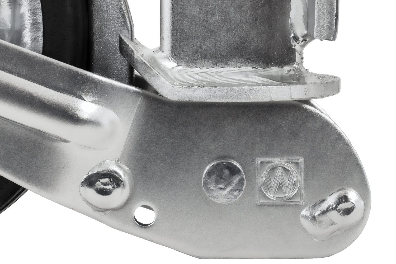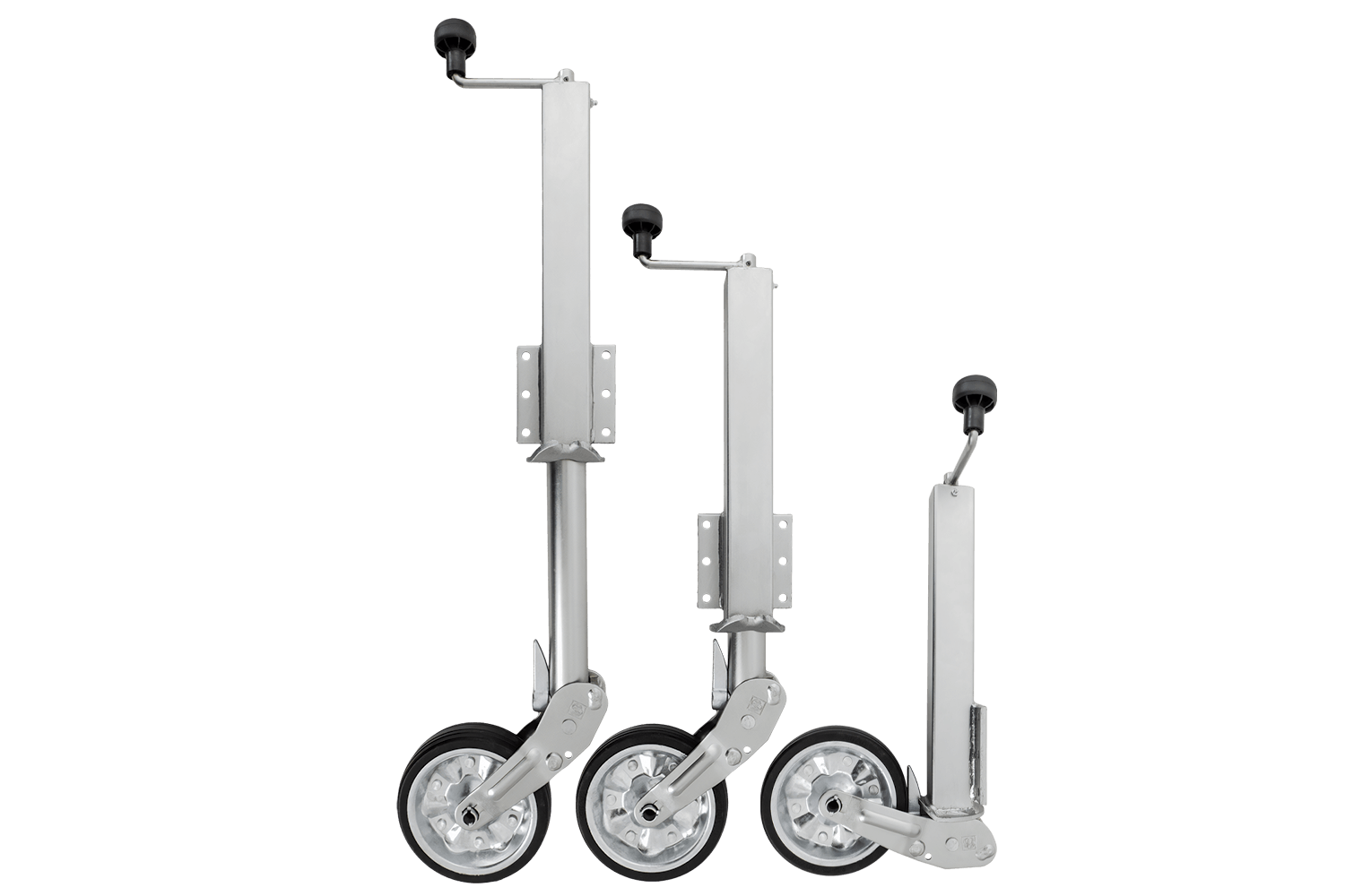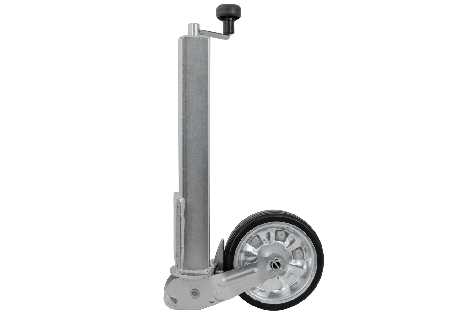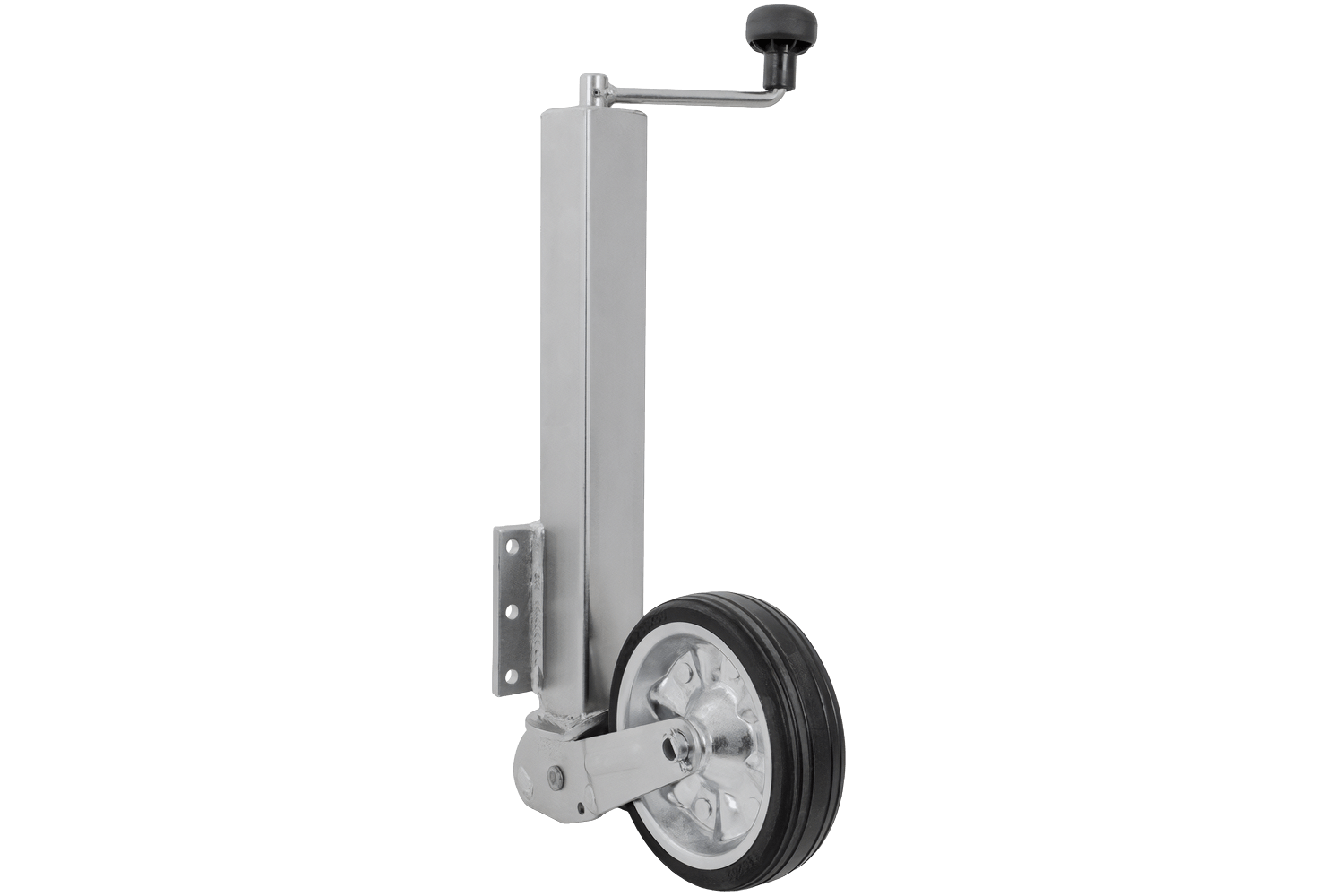 Hjulet er elektrogalvanisert , noe som effektivt beskytter det mot korrosjon og tøffe værforhold. Løftemekanismen er helautomatisk, noe som forenkler den daglige bruken betydelig. Takket være den robuste solide gummikonstruksjonen, stålfelgen og de glatte lagrene, sikrer støttehjulet komfortabel manøvrering selv i ujevnt terreng, mens monteringsplaten sikrer stabil montering på tilhengerens trekkstang .