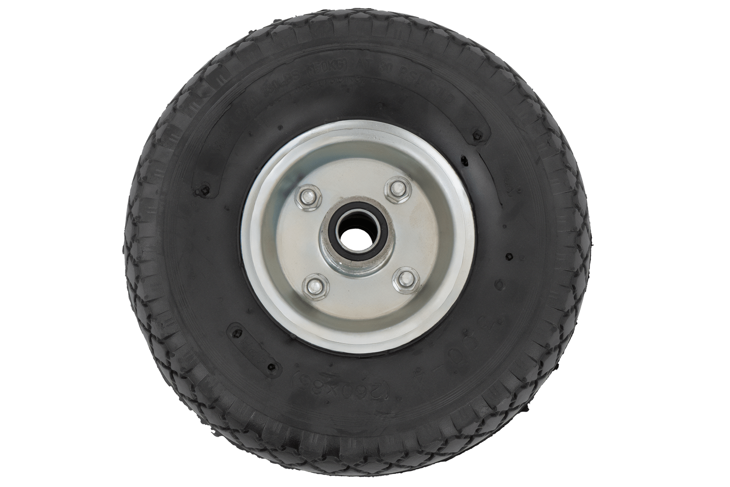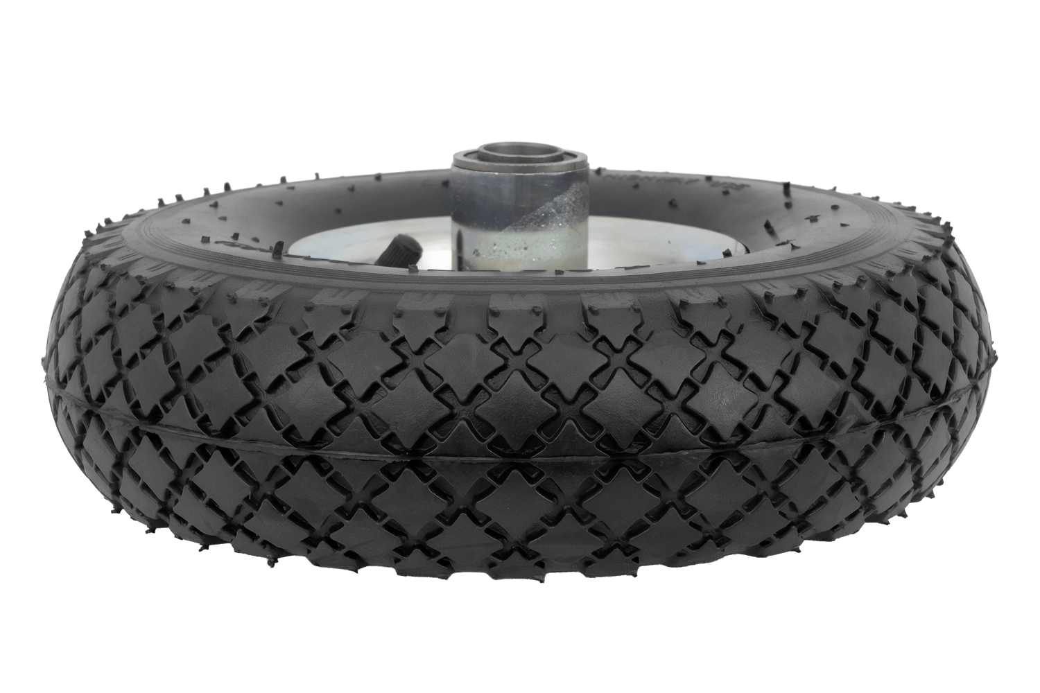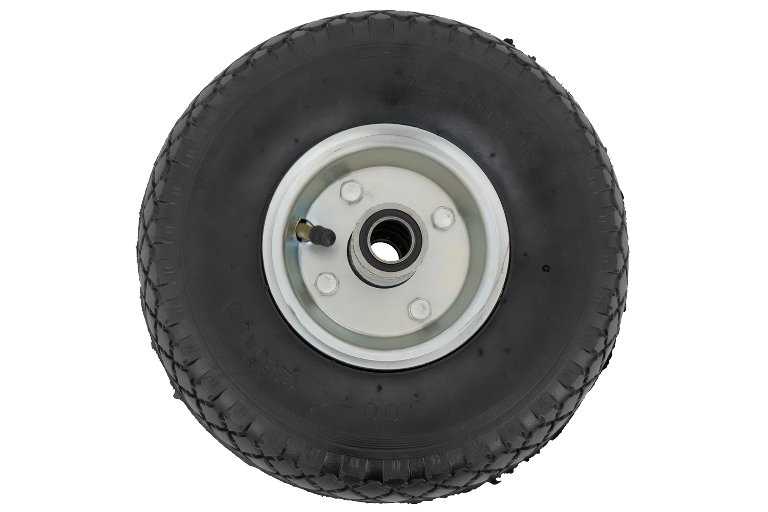 Dette er et reservehjul for tilhengerhjul . Felgen av metallplate og kulelagerkonstruksjonen er lette og korrosjonsbestandige, og det luftfylte dekket absorberer støt godt, noe som gjør det enkelt å rulle tilhengeren jevnt rundt i innkjørselen, hagen eller verkstedet.