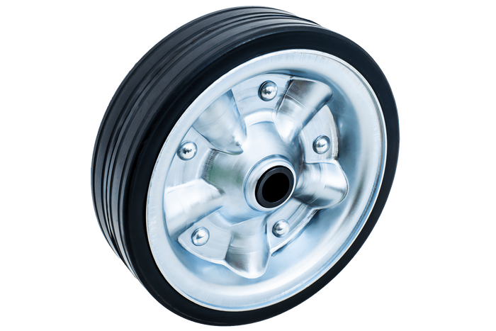 Et støttehjul brukes til å støtte trekkstangen og manuelt manøvrere tilhengeren utenfor kjøretøyet: når du kobler til, frakobler, plasserer tilhengeren mens den er parkert, eller manøvrerer på trange steder. Et solid gummihjul er et godt valg når vedlikeholdsfri og punkteringsbestandig ytelse er viktig – det krever ikke pumping, ruller godt på harde overflater (betong, belegningsstein), og risikoen for dekkskader minimeres.