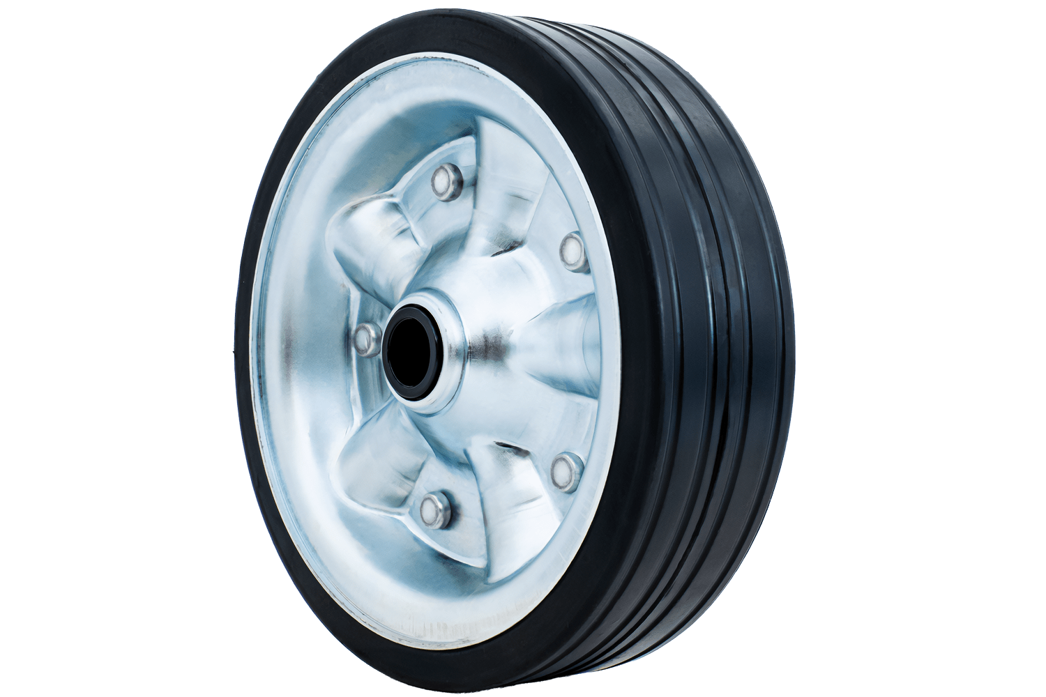 Dette vedlikeholdsfrie reservehjulet er designet for tilhengerhjul , noe som gjør det ideelt for daglig bruk. Solid gummi sikrer pålitelig rulling og motstand mot skader, mens stålfelgen sikrer holdbarhet under påkjenningene i et verksted, på en hage eller i innkjørselen.