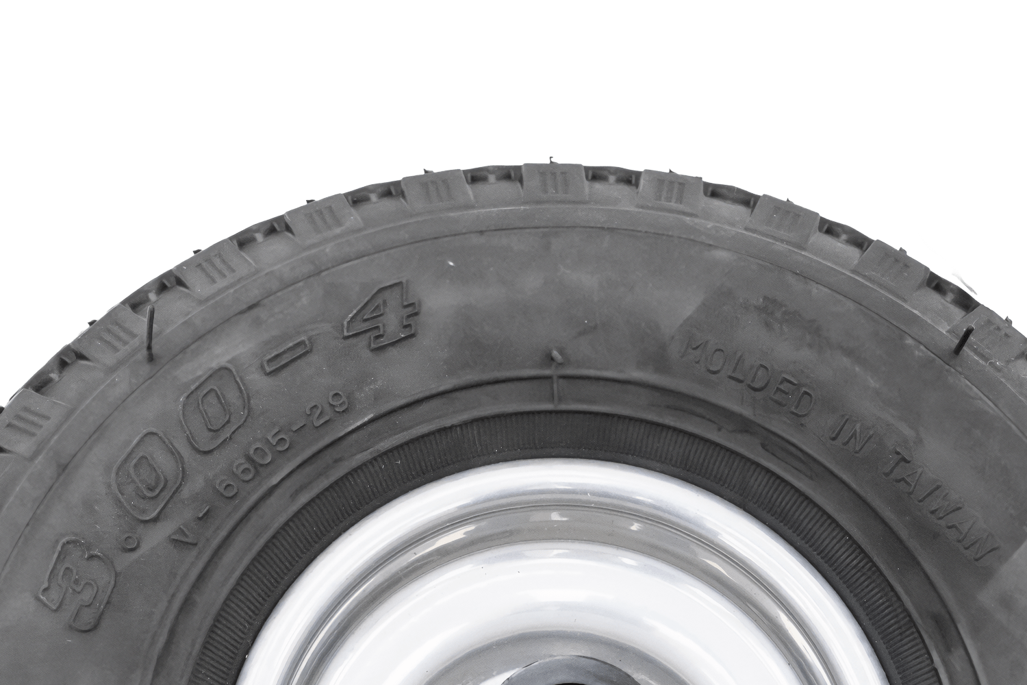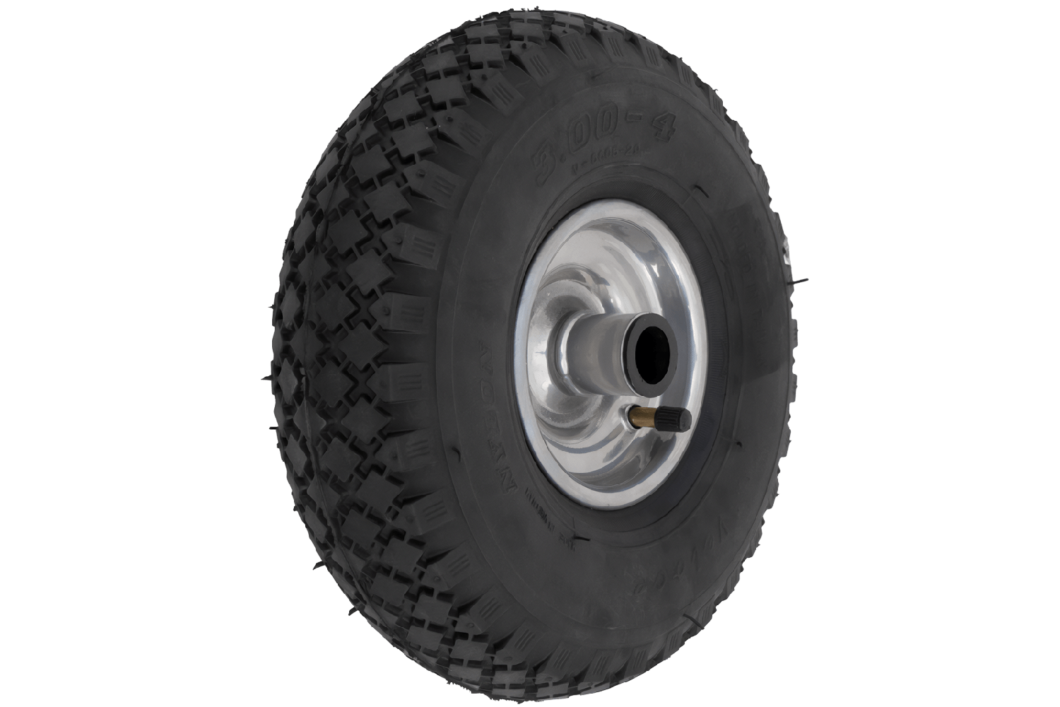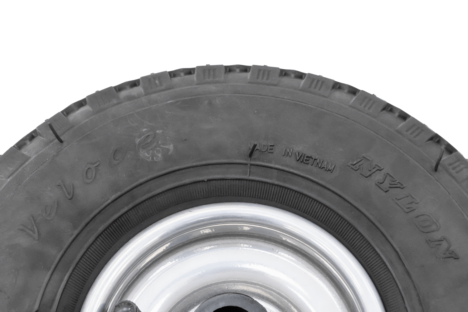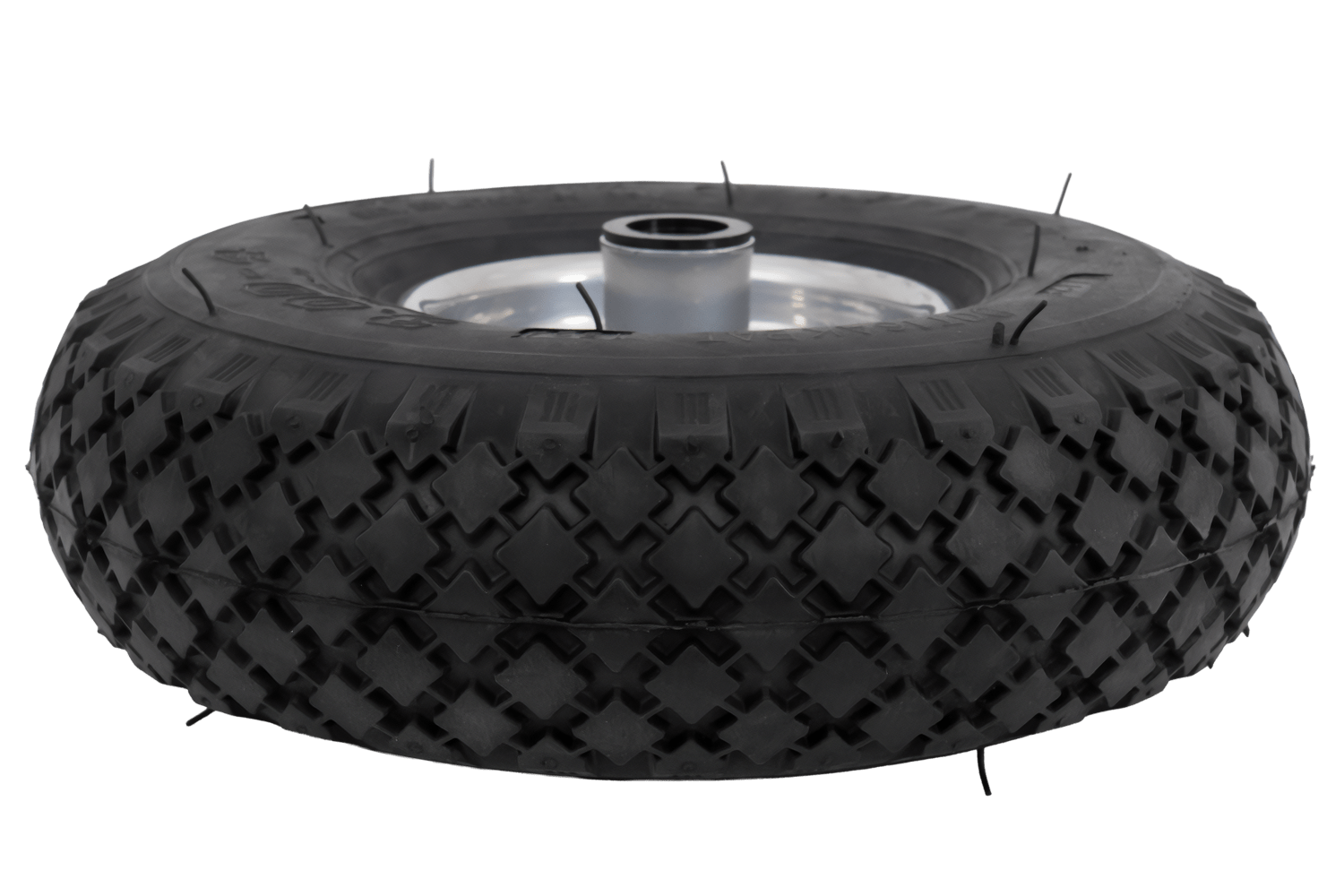 Dette er et reservehjul, pneumatisk dekk, designet for tilhengerhjul . Felgen av metallplate og plastlagrene sikrer lett og korrosjonsbestandig drift, mens det pneumatiske dekket effektivt absorberer støt og forenkler jevn rulling av tilhengeren rundt i innkjørselen, hagen eller verkstedet.