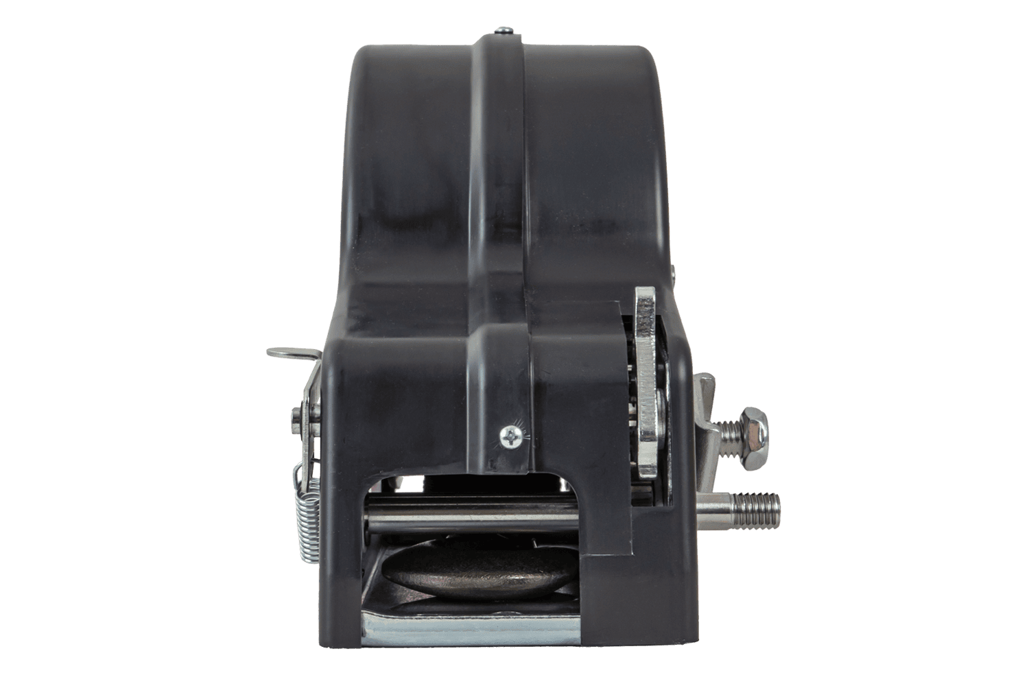 Huset beskytter mekanismen mot smuss, mens den robuste trommelen og giret sikrer jevn båndopprulling og presis kraftkontroll. Endekroken muliggjør rask festing av lasten eller løfteøyet. Den justerbare girutvekslingen lar deg justere arbeidshastigheten etter dine behov: raskere for lette lass, saktere og med større kraft for tyngre lass.